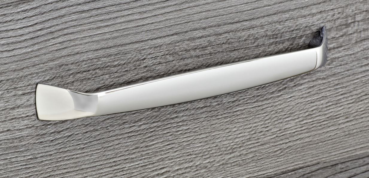 Die Front und der Korpus von 328 sind in Graphit Struktur quer Nachbildung gehalten. Dieser Farbton wirkt modern und dezent. Ideal um die Möbel zu integrieren. Die Oberflächen der Modelle sind absolut pflegeleicht und lassen sich auch ohne agressive Reiniger hervorragend säubern. Die Badezimmermöbel werden mit einem Bügelgriff in Chrom Glanz geliefert.