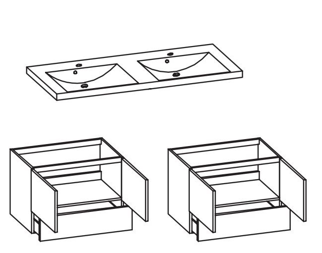 - Lieferung der Badmöbel zerlegt, inklusive aller Beschläge