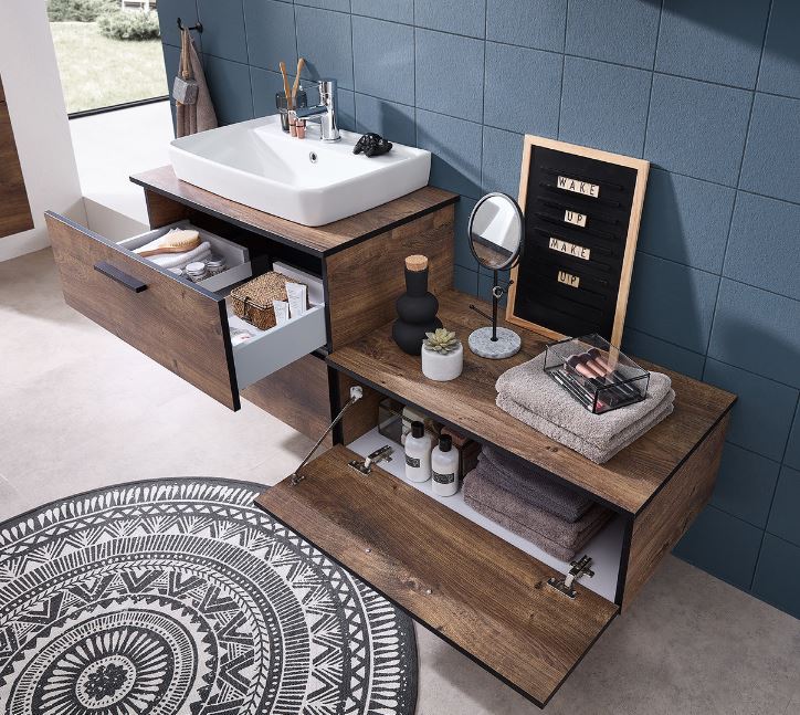 - Lieferung der Badmöbel zerlegt, inklusive aller Beschläge