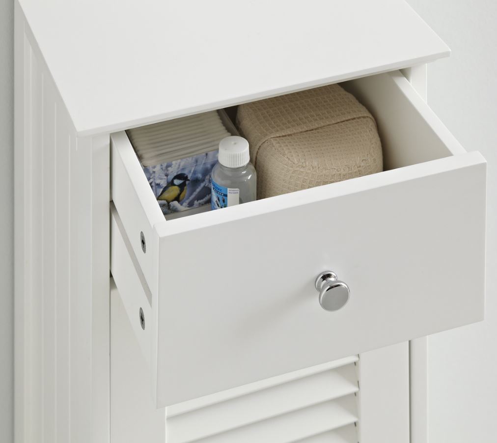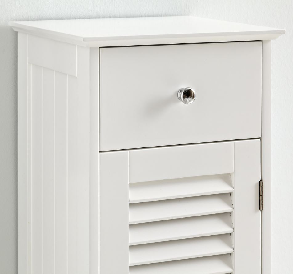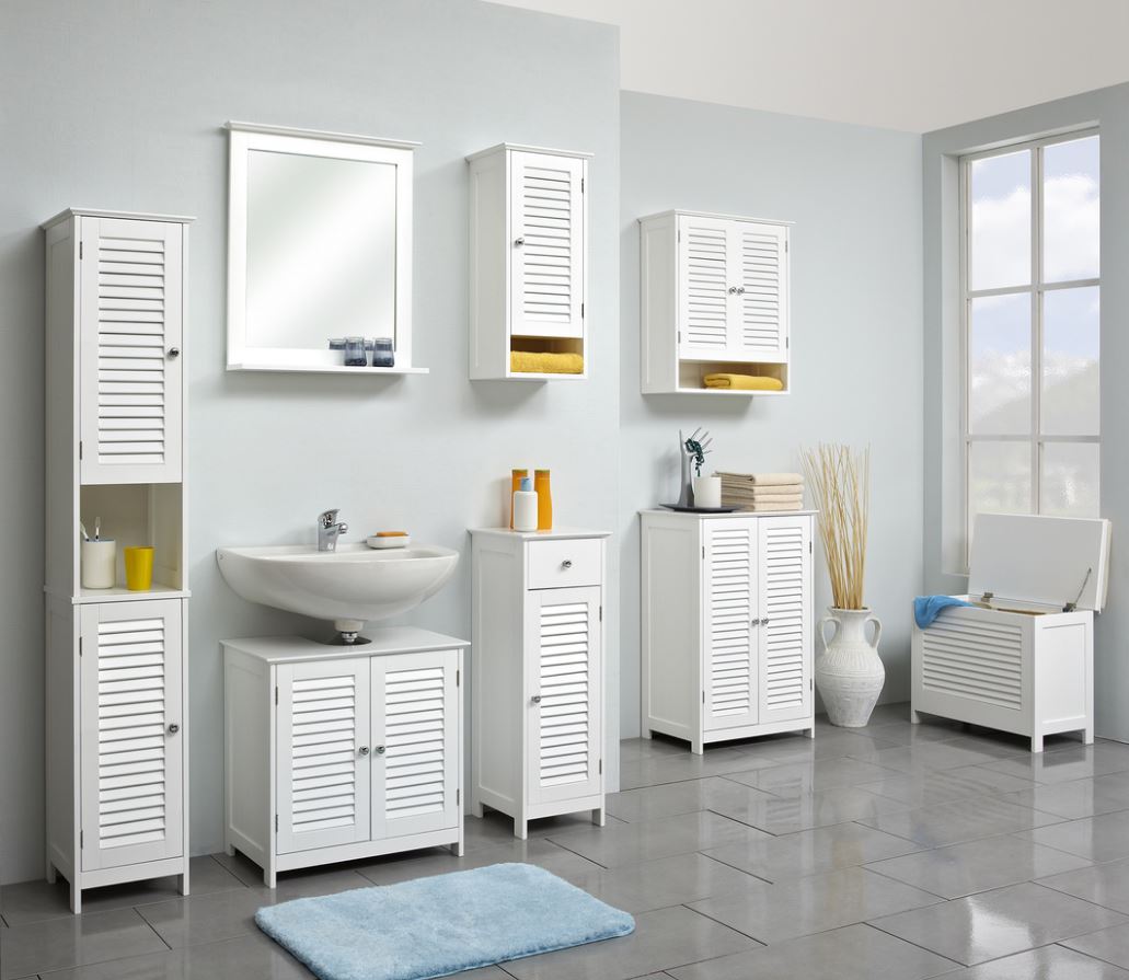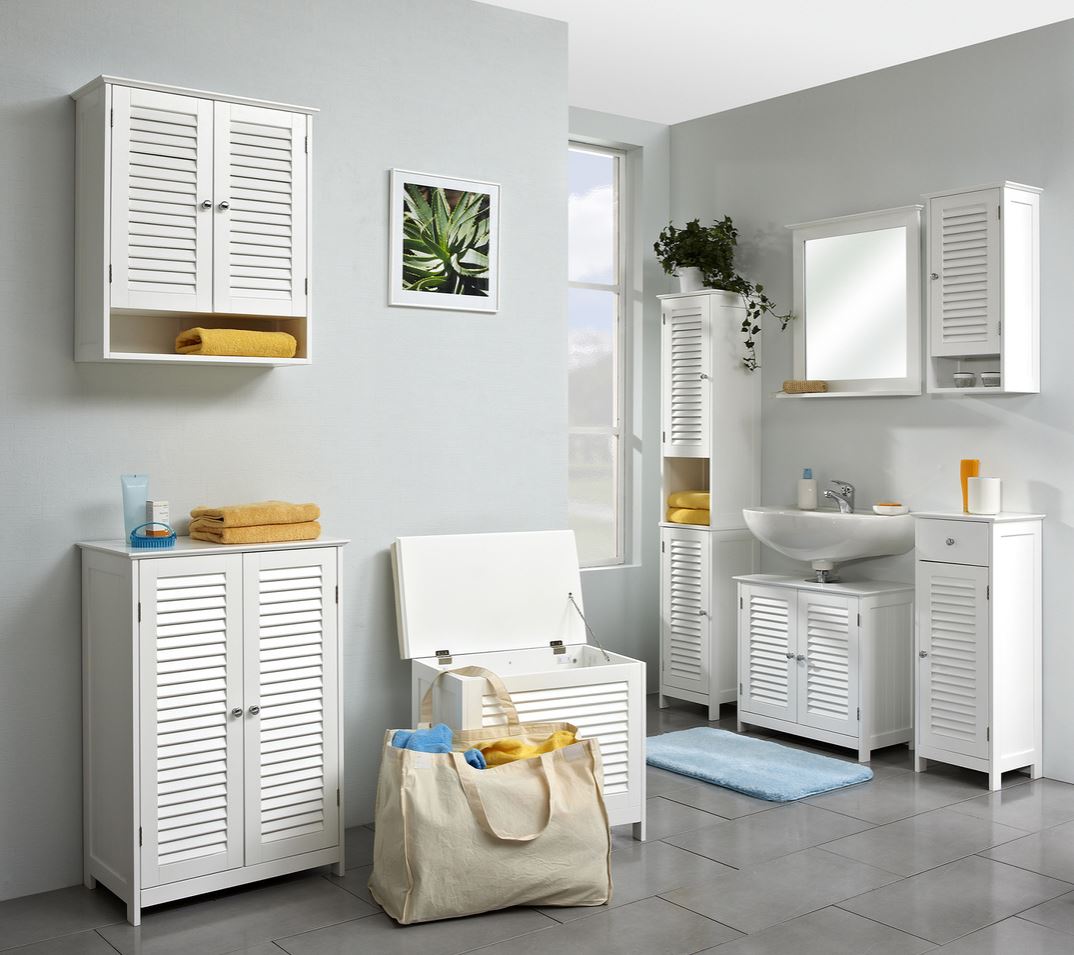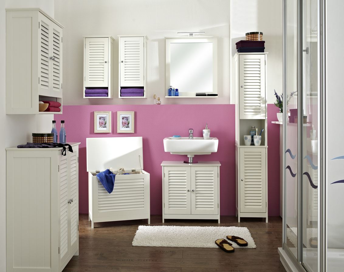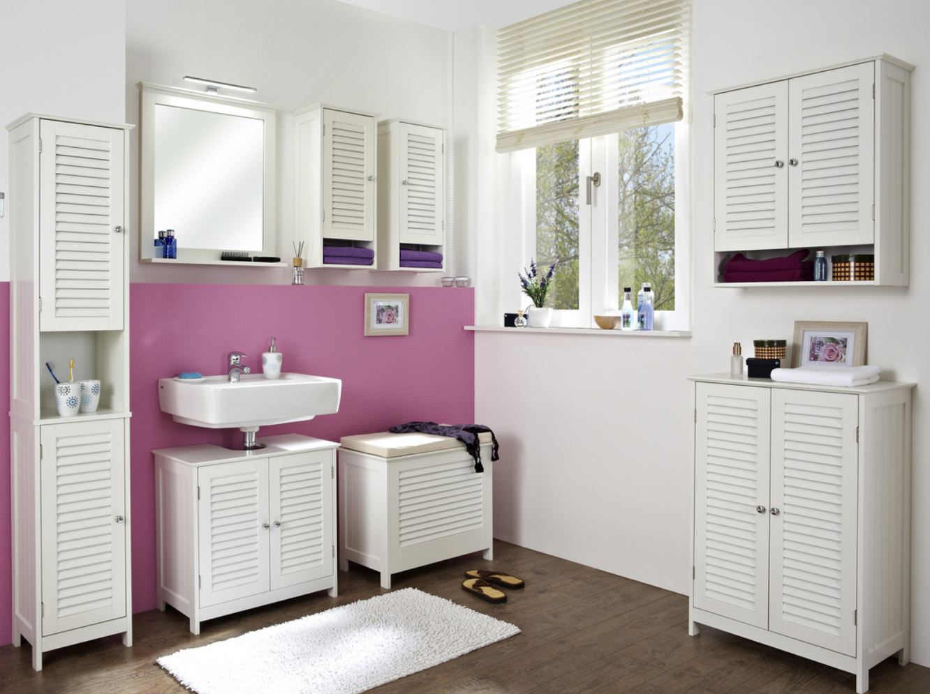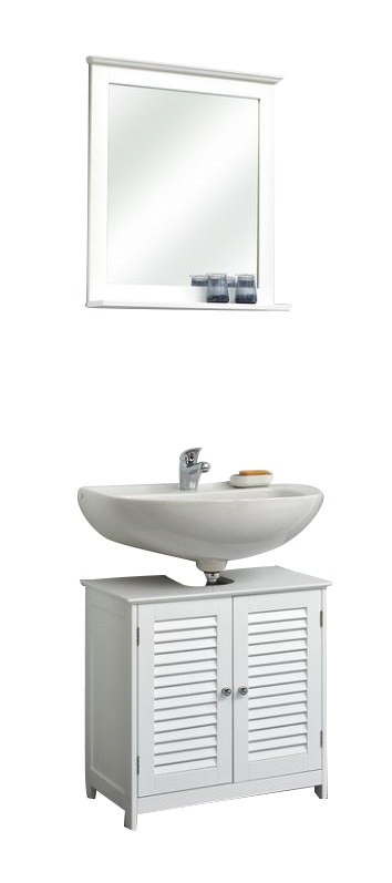 Das Badmöbelset von Pelipal Quickset 928 besteht aus einem geräumigen, universalen Waschbeckenunterschrank mit Siphonausschnitt und 2 Drehtüren für jede Menge Stauraum sowie aus einem praktischen Flächenspiegel mit integrierter Ablage in Weiß. Ein Waschtisch ist in diesem Set nicht enthalten. Der Unterschrank wird stehend montiert. Wahlweise können Sie Ihren Flächenspiegel mit einer Aufsatzleuchte versehen. Das Set hat eine Breite von 60 cm und ist hierdurch ideal für ein komfortables Gästebad oder WC geeignet. Das Modell Pelipal Quickset 928 hält Möbelstücke im gemütlichen Landhausstil mit weißer Lamellenfront und Knopfgriffen in Chrom Glanz für Sie bereit. Das Design wirkt gemütlich und kreiert eine Atmosphäre zum Wohlfühlen. Sie können Ihr Badmöbelset mit praktischen Beimöbeln dieser Serie optimal ergänzen. Es stehen Ihnen ein Hochschrank, Unterschrank, Wäschetruhe sowie Wandschrank zur Verfügung. Diese funktionalen Schränke bringen viel Stauraum und Ordnung in Ihr gut sortiertes Badezimmer. Die Beimöbel werden stehend auf Füßen in Grau montiert.