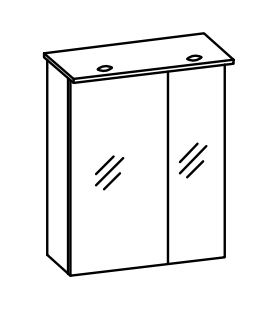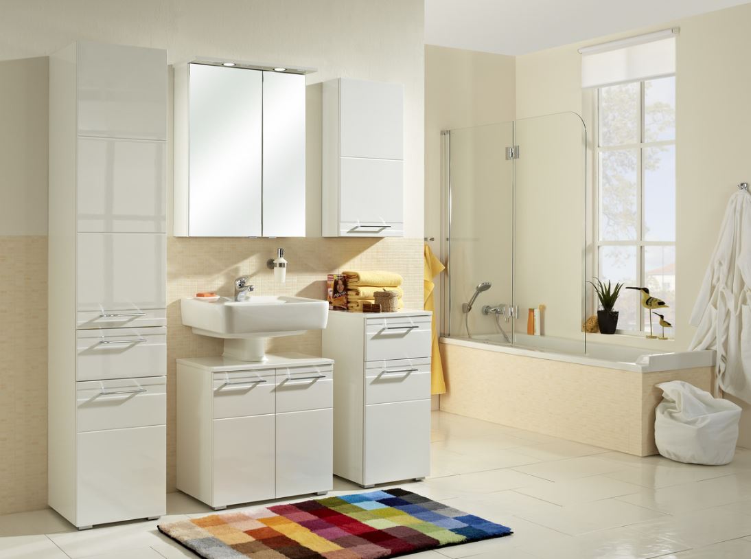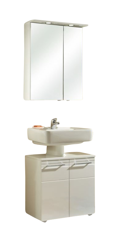 Das Badmöbelset von Pelipal 996 besteht aus einem geräumigen Waschbeckenunterschrank mit 2 Drehtüren sowie Siphonausschnitt für den universalen Gebrauch und aus einem praktischen Spiegelschrank mit 2 LED-Leuchten, Schalter und Steckdose. Der Unterschrank wird stehend montiert. Das Set hat eine Breite von 60 cm und ist hierdurch ideal für ein komfortables WC oder Gästebad geeignet. Sie erhalten auch eine Badmöbelkombination des Modelles 996 mit einem Keramikwaschtisch, Unterschrank sowie Spiegelschrank hier bei Badmoebel-1. Das Modell Pelipal 996 präsentiert sich klassisch, stilvoll in Lack Weiß Hochglanz. Die Möbel sind mit Bügelgriffen in Chrom Glanz versehen. Es stehen zudem tolle und praktische Beimöbel wie ein Hochschrank, Midischrank, Unterschrank und Wandschrank für Sie bereit. Diese funktionalen Schränke bringen viel Stauraum und Ordnung in Ihr gut sortiertes Badezimmer. Die Beimöbel können wahlweise wandhängend oder stehend auf einem Fuß-Set montiert werden.