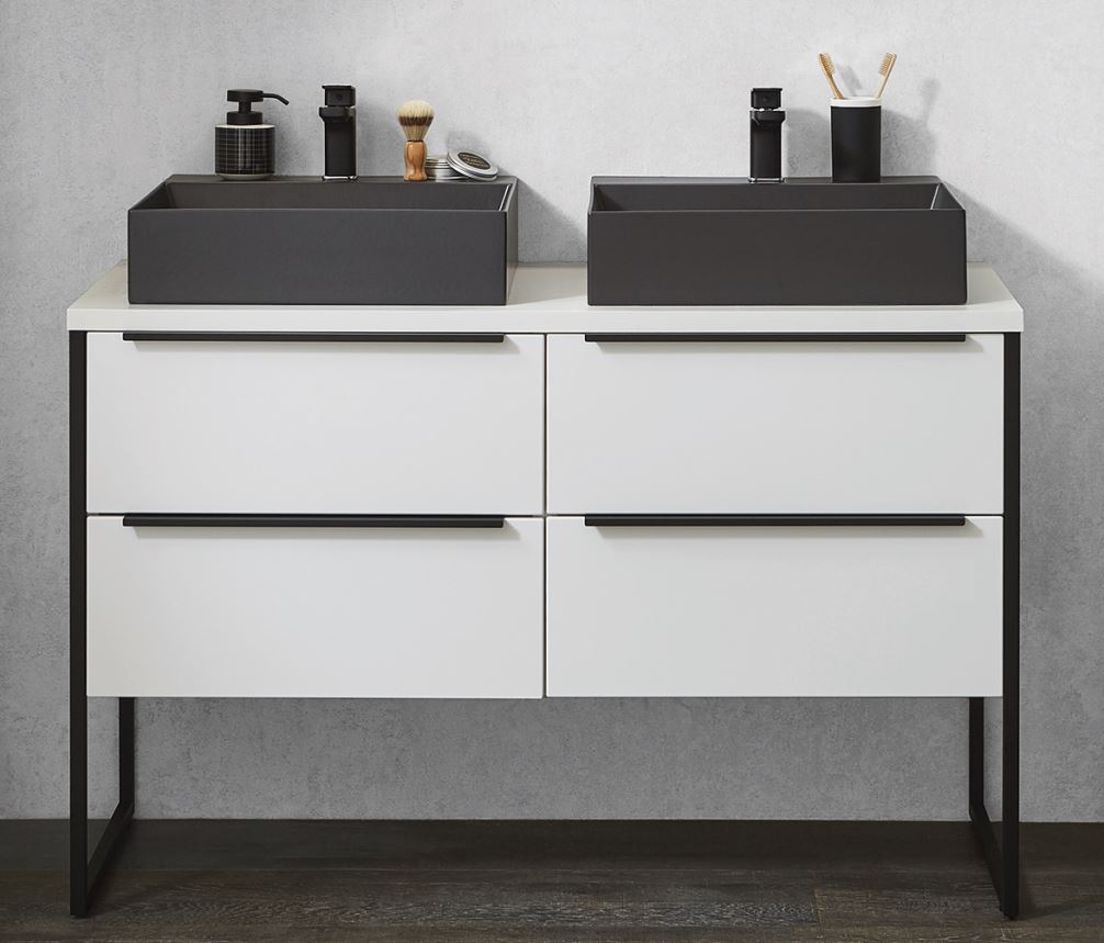 - Metallrahmen für Waschtisch-und Plattenunterschränke in schwarz matt mit Korpusblende.