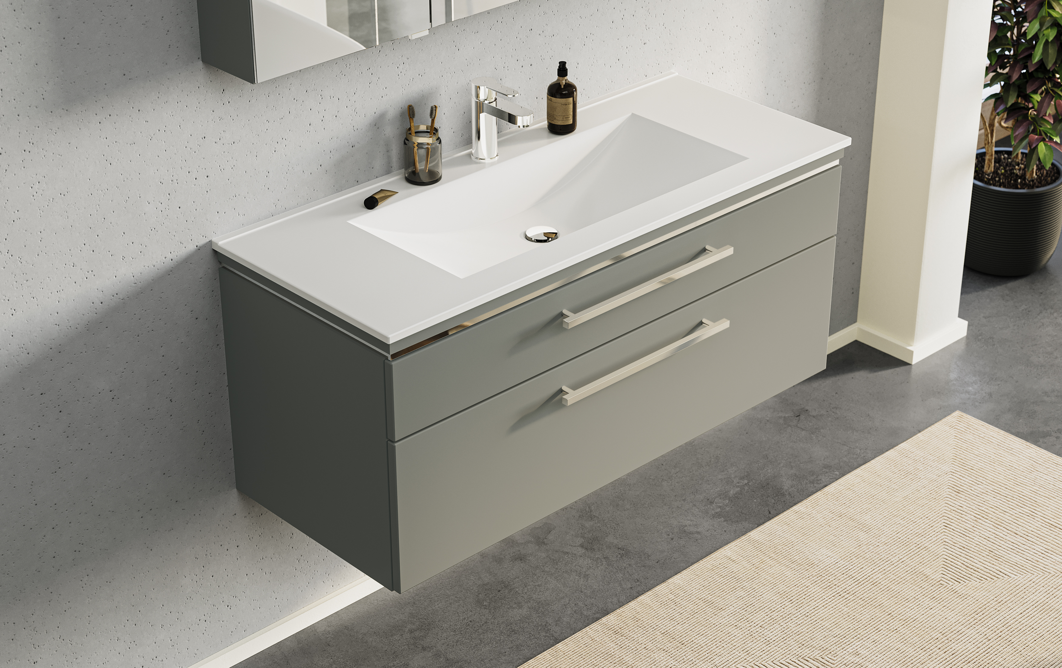 Abgebildete Dekorationsartikel, Beistellschränke sowie Armatur sind nicht im Lieferumfang enthalten und müssen ggf. separat bestellt werden.