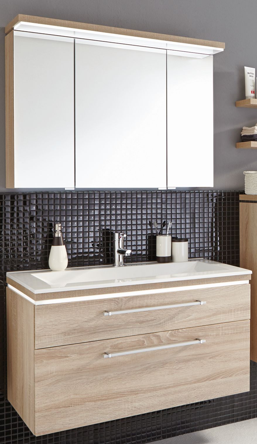 Abgebildete Dekorationsartikel, Beistellschränke sowie Armatur sind nicht im Lieferumfang enthalten und müssen ggf. separat bestellt werden.