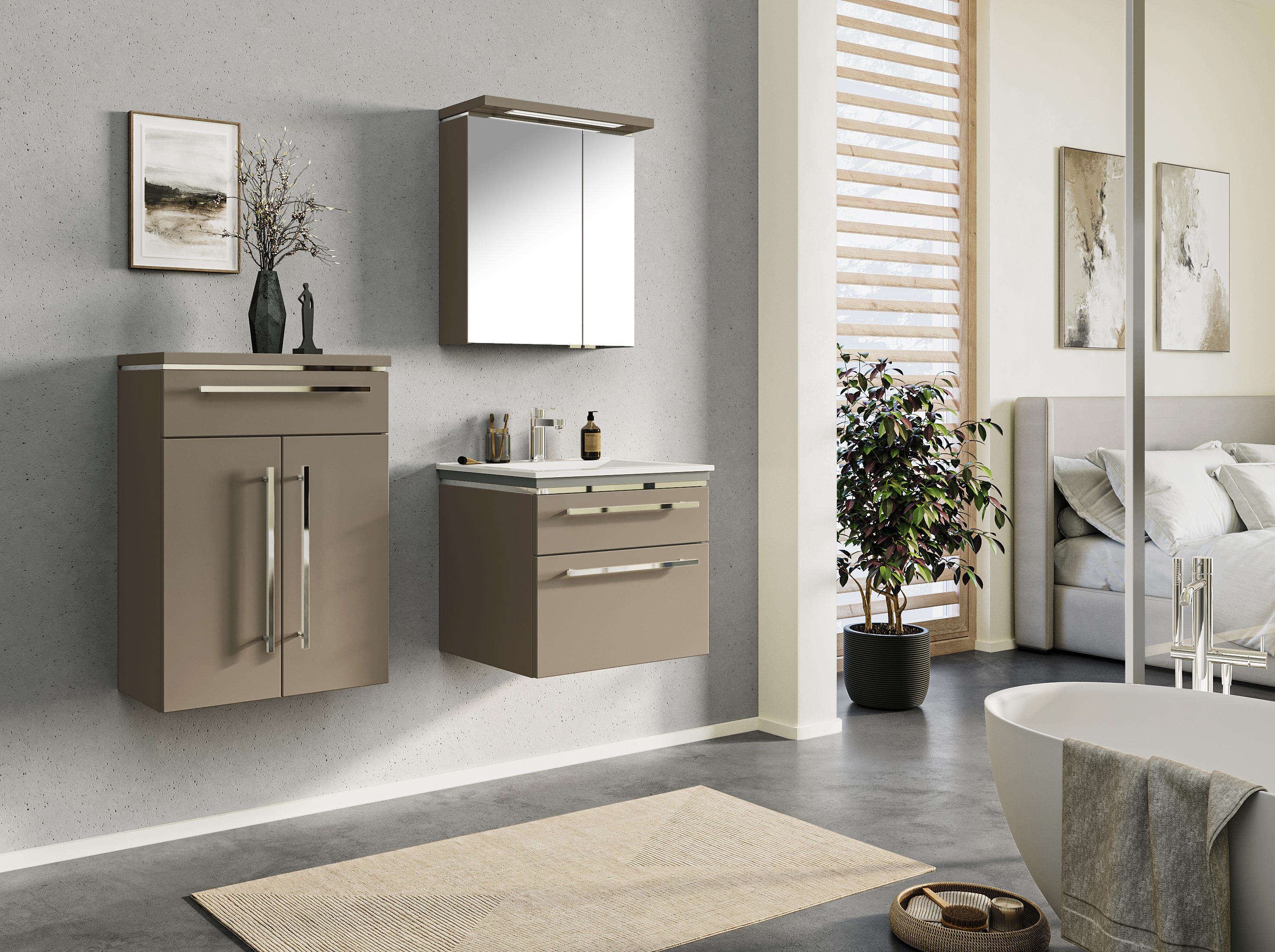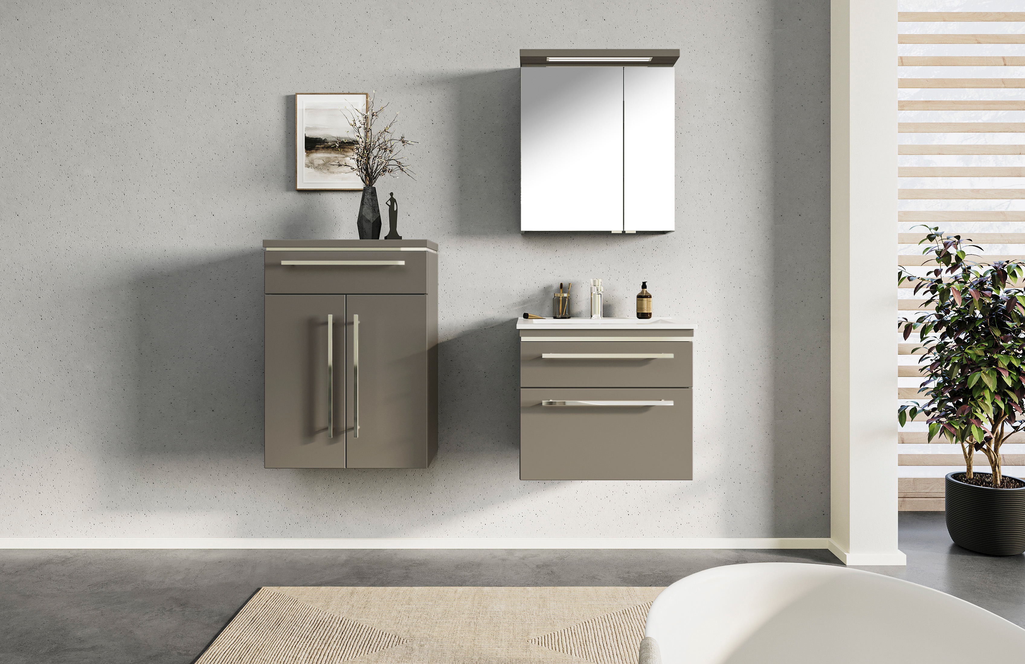 Abgebildete Dekorationsartikel, Beistellschränke sowie Armatur sind nicht im Lieferumfang enthalten und müssen ggf. separat bestellt werden.