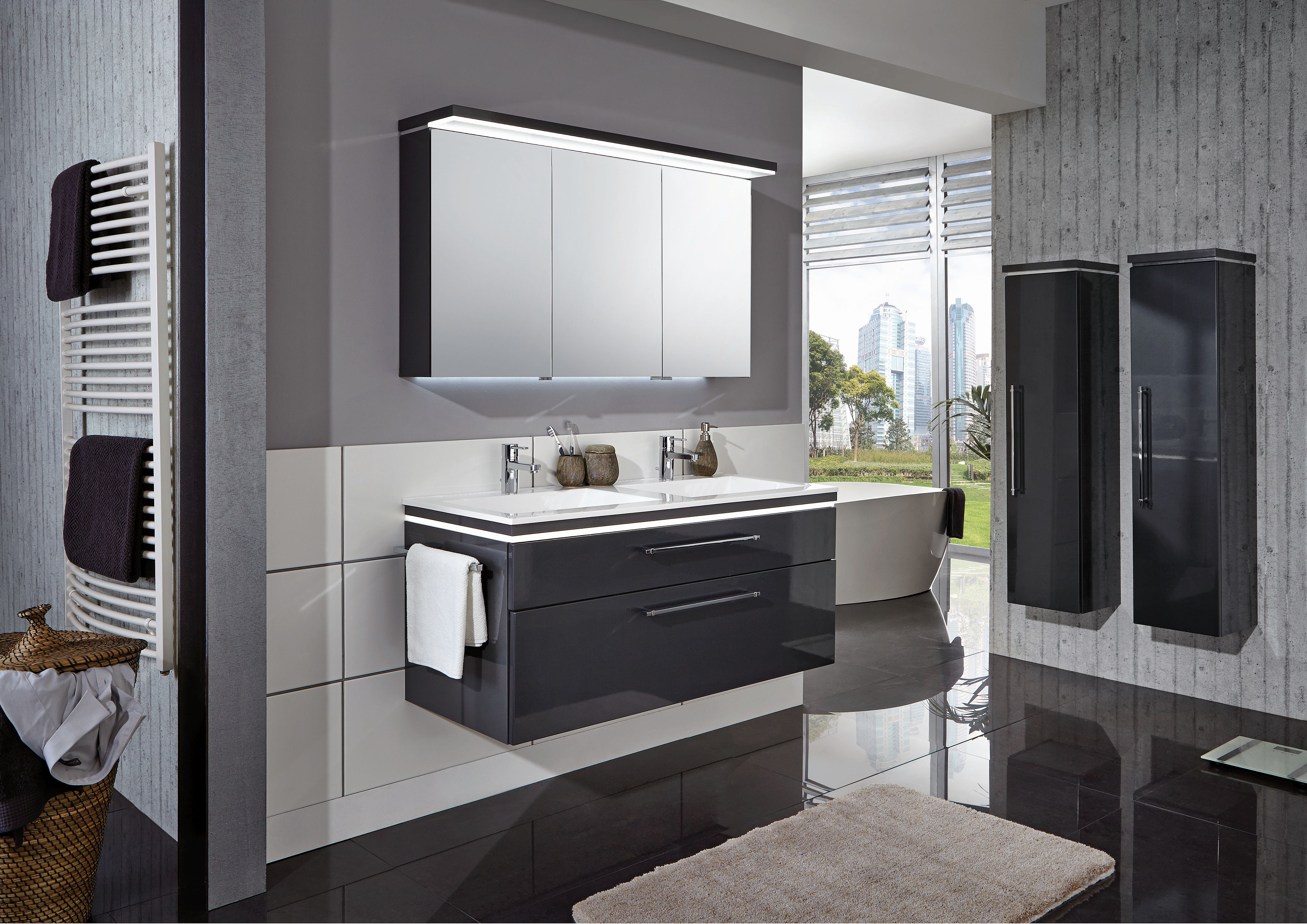 Puris Cool Line Badmöbel Set 122 cm breit - Spiegelschrank inkl. Gesimsboden mit LED-Beleuchtung -25%