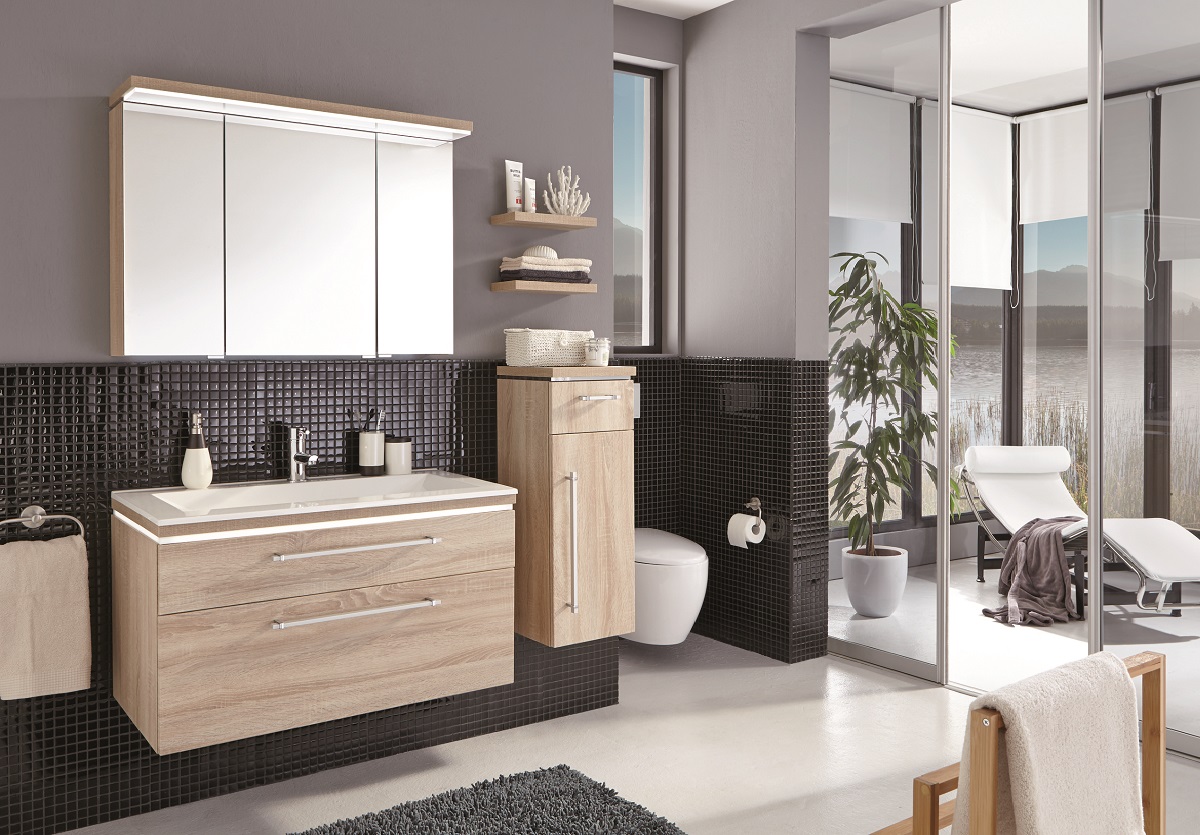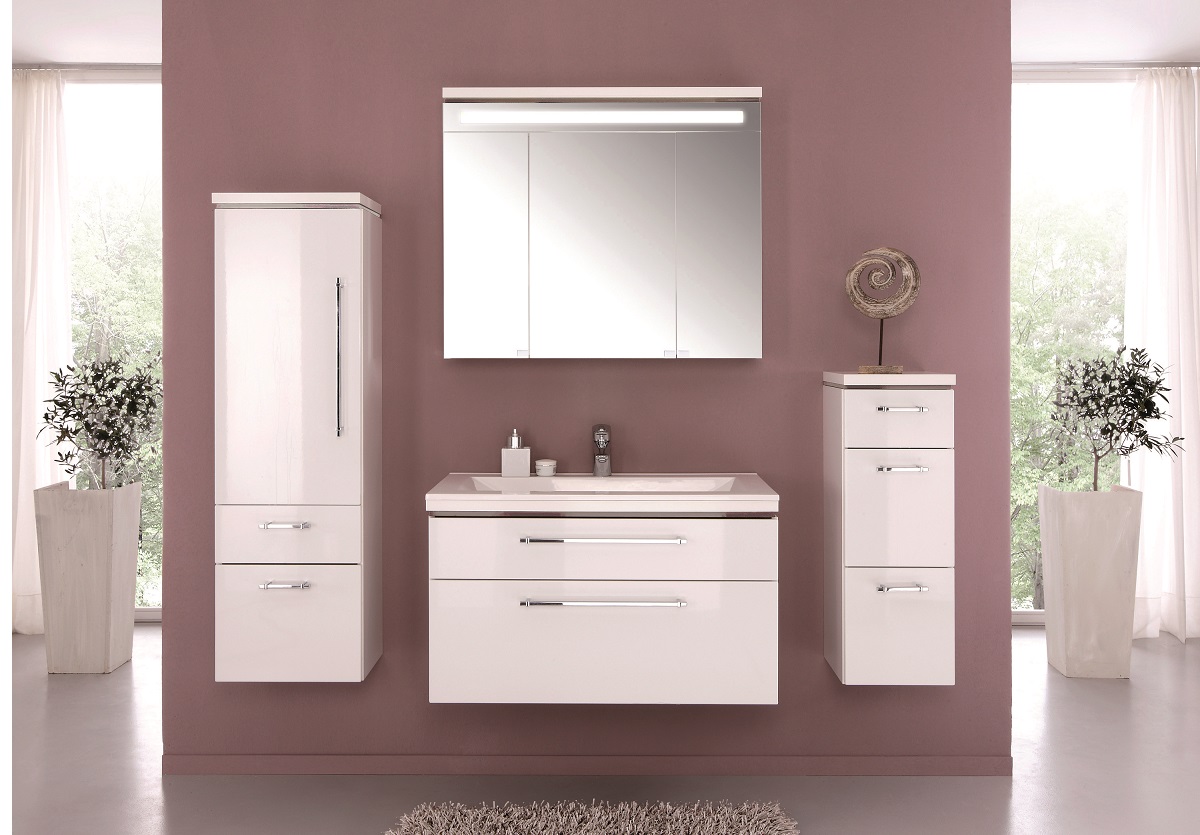 Puris Cool Line Badmöbel Set 92 cm breit - Spiegelschrank inkl. Gesimsboden mit Beleuchtung -29%
