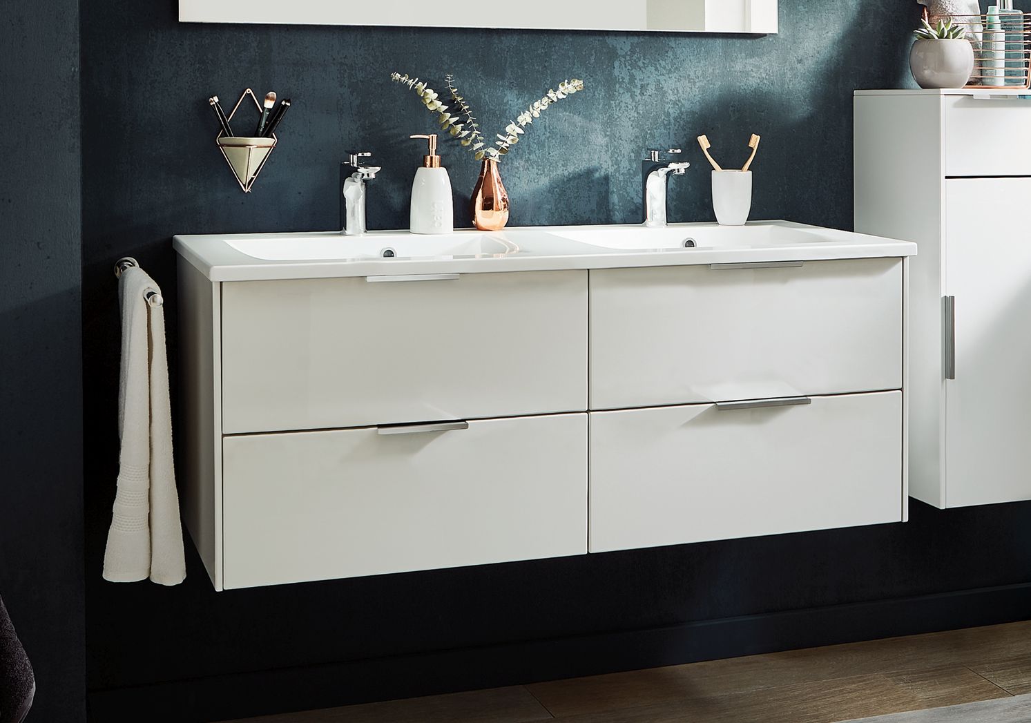 HINWEIS: Abgebildete Dekorationsartikel, Beistellschränke und Armaturen sind im Lieferumfang nicht enthalten und müssen separat bestellt werden.