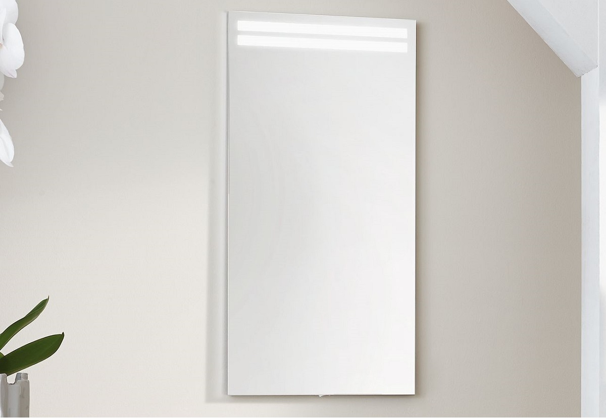 Der Puris for guests Badspiegel ist 40 cm breit, 80 cm hoch und 2,8 cm tief. Der Spiegel wird die Badezimmereinrichtung eines Gästebades oder eines kleines Bades stilvoll vervollständigen. Der Flächenspiegel wird mit einer schlichten Außenkante in Chrom ummantelt und verfügt über zwei sandgestrahlte LED-Lichtfenster, welche sich oben befinden. Die Bedienung der Beleuchtung erfolgt über einen Schalter.