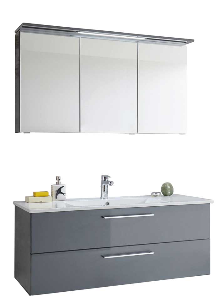 Puris Cool Line Badmöbel Set 122 cm breit - Spiegelschrank inkl. Gesimsboden mit LED Flächenleuchte -30%