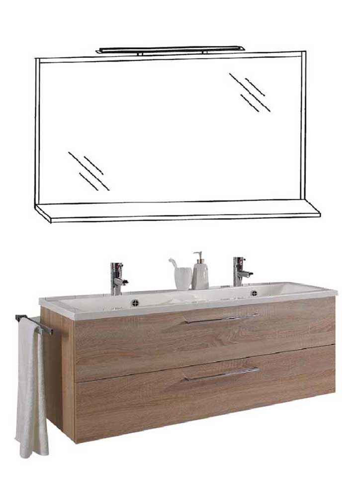 Puris Fresh Badmöbelset mit Doppelwaschtisch 120 cm - Flächenspiegel mit Aufsatzleuchte