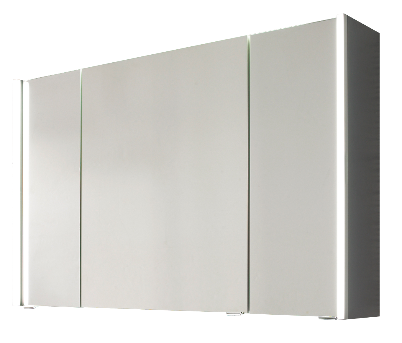 Die hochwertige Badkombination von Puris Fresh wird mit einem dreitürigen Spiegelschrank abgerundet. Der 120 cm breite Bad-Spiegelschrank sorgt mit den seitlichen LED-Beleuchtungsprofilen für ein angenehmes Wohlfühl-Ambiente im Badezimmer. Auch der Puris Spiegelschrank sorgt hinter den drei Spiegeltüren für ausreichend Stauraum der Pflegeartikel. Alternativ kann eine LED-Waschplatzbeleuchtung zum Spiegelschrank mitbestellt werden, welche unterhalb des Spiegels montiert wird oder eine LED-Aufbauleuchte, welche oben montiert wird.