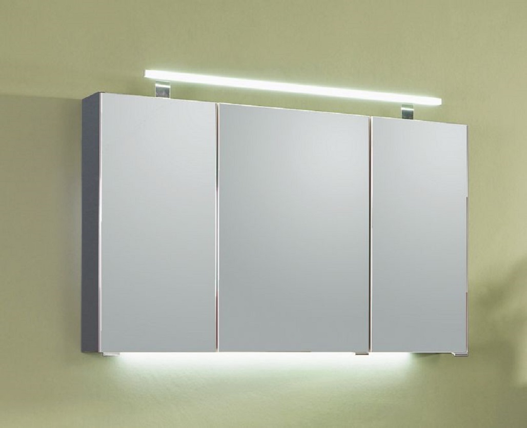 Der moderne und stilvolle Puris Fresh Spiegelschrank S2A431067 überzeugt durch Funktionalität. Der 100 cm breite Puris Bad-Spiegelschrank ist mit drei Spiegeltüren, Glaseinlegeböden, Schalter-Steckdosen-Element und einer LED Aufbauleuchte ausgestattet. Der Innenraum vom Spiegelschrank wird von insgesamt drei Einlegeböden aus Glas aufgeteilt. Sodass man die täglichen Badartikel übersichtlich verstauen kann. Die energiesparsame LED Aufbauleuchte sorgt nicht nur für ein angenehmes Wohlfühl-Ambiente mit Badezimmer sondern auch für die tolle Ausleuchtung der Spiegelfront.