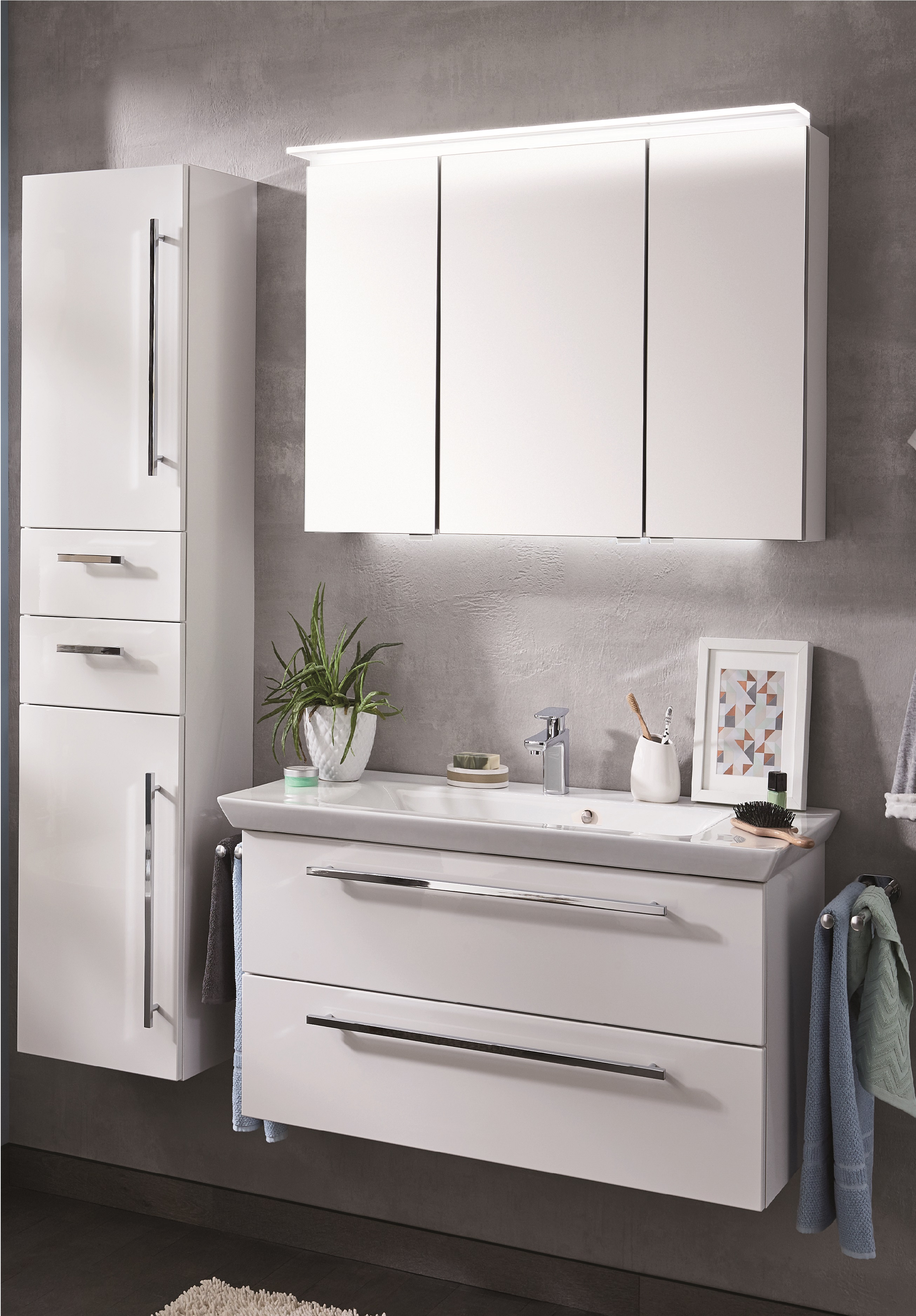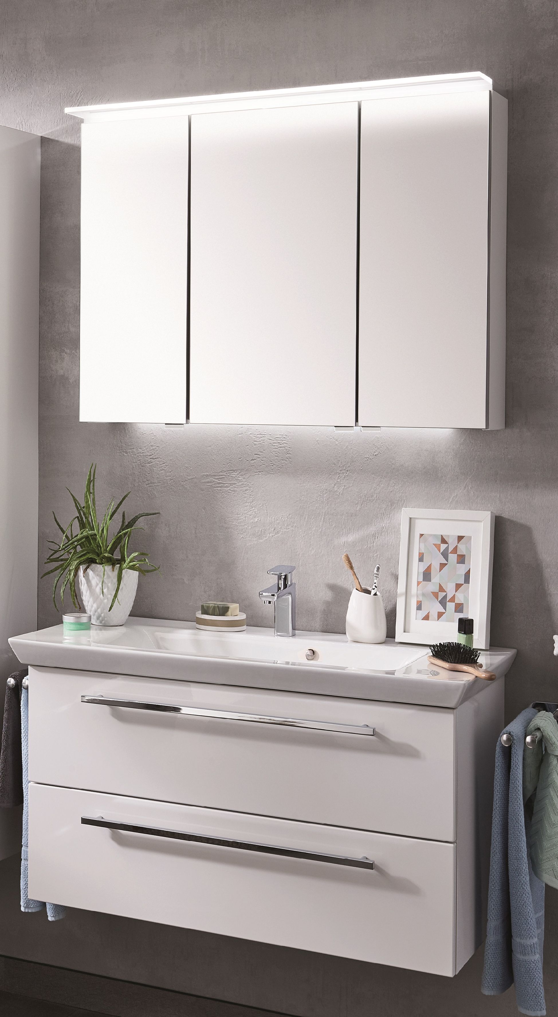 Puris Cool Line Badmöbel Set 92 cm breit - Spiegelschrank inkl. Gesimsboden mit Beleuchtung -29%
