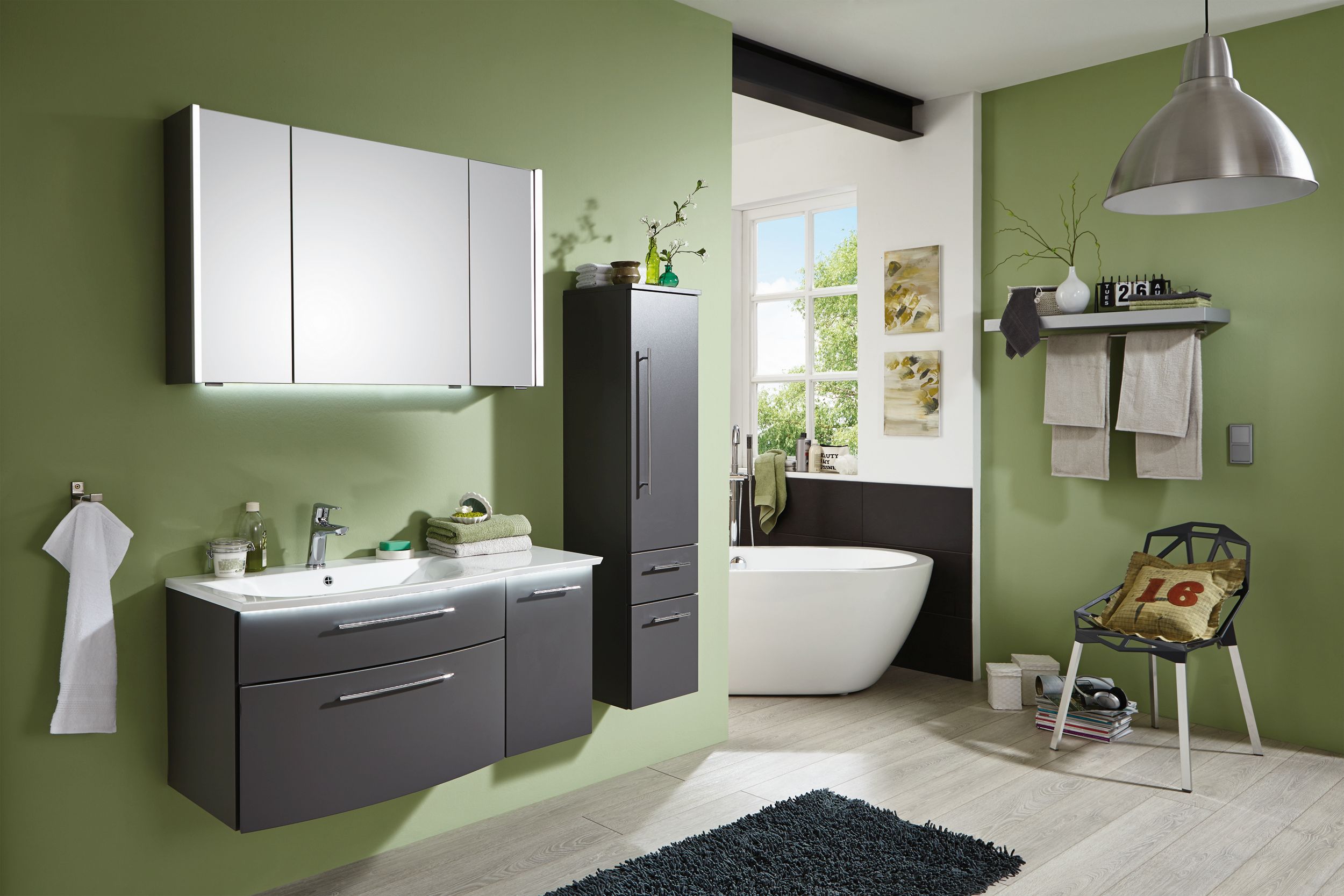 Der Puris Linea Badmöbel Spiegelschrank passt hervorragend zum Waschtisch mit Unterschrank in der Breite 101,2 cm, welcher ebenfalls von der gleichen Badserie ist.