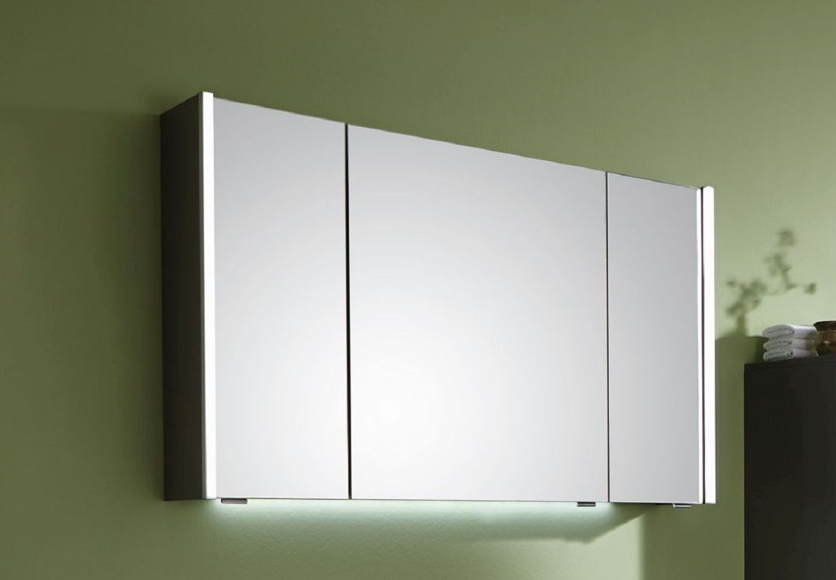 Das Puris Linea Bad-Set wird mit einem dreitürigen Spiegelschrank vervollständigt, welcher mit drei Spiegeltüren auf Trägerplatte, Glasfachböden, Schaltersteckdosenelement und einer LED Beleuchtung ausgestattet ist. Die seitlichen LED-Beleuchtungsstreifen heben das moderne Design der Puris Linea Badmöbel optisch hervor und sorgen für ein angenehmes Ambiente im Badezimmer.