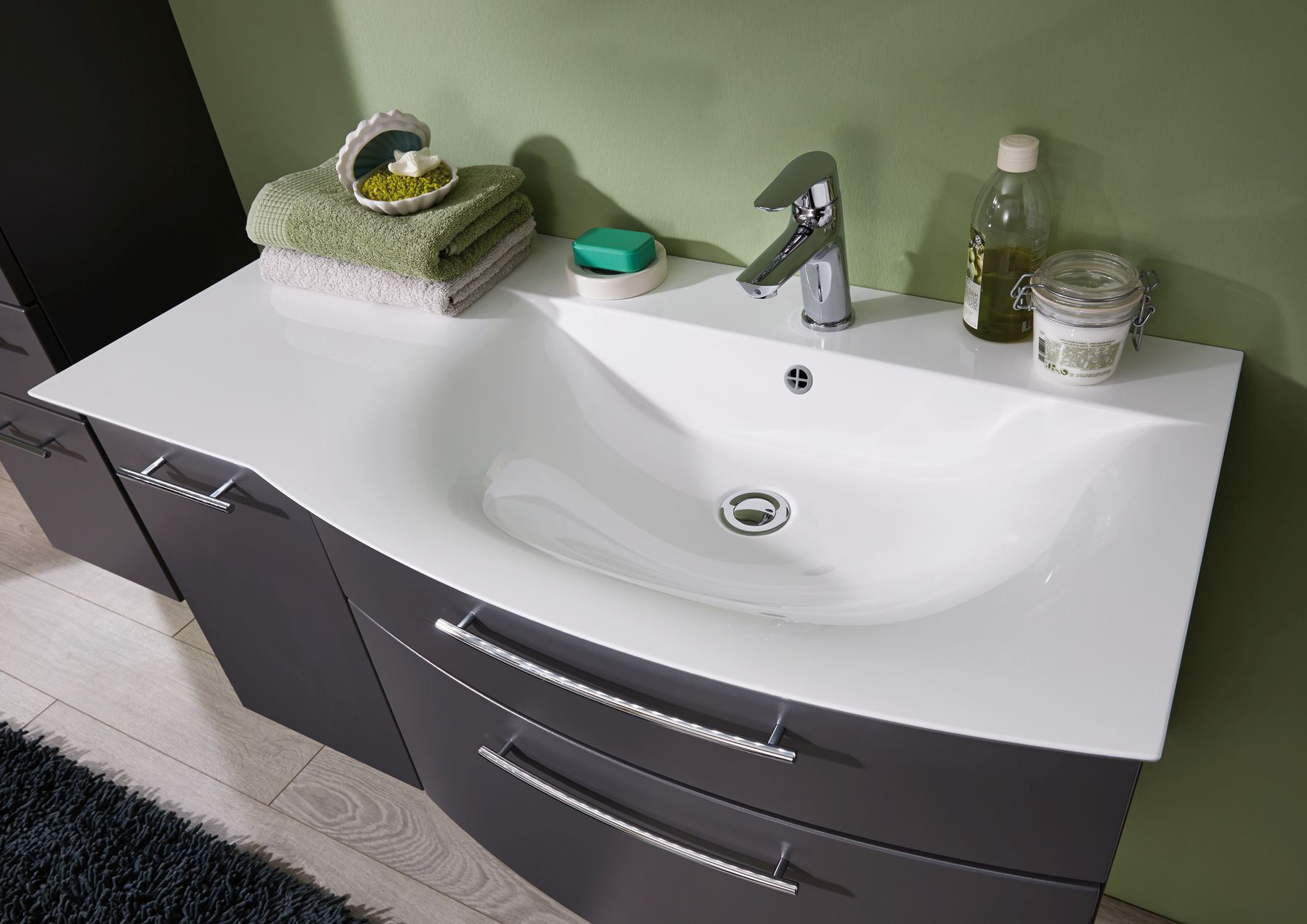 Abgebildete Dekorationsartikel, Beistellschränke sowie Armatur sind nicht im Lieferumfang enthalten und müssen ggf. separat bestellt werden.
