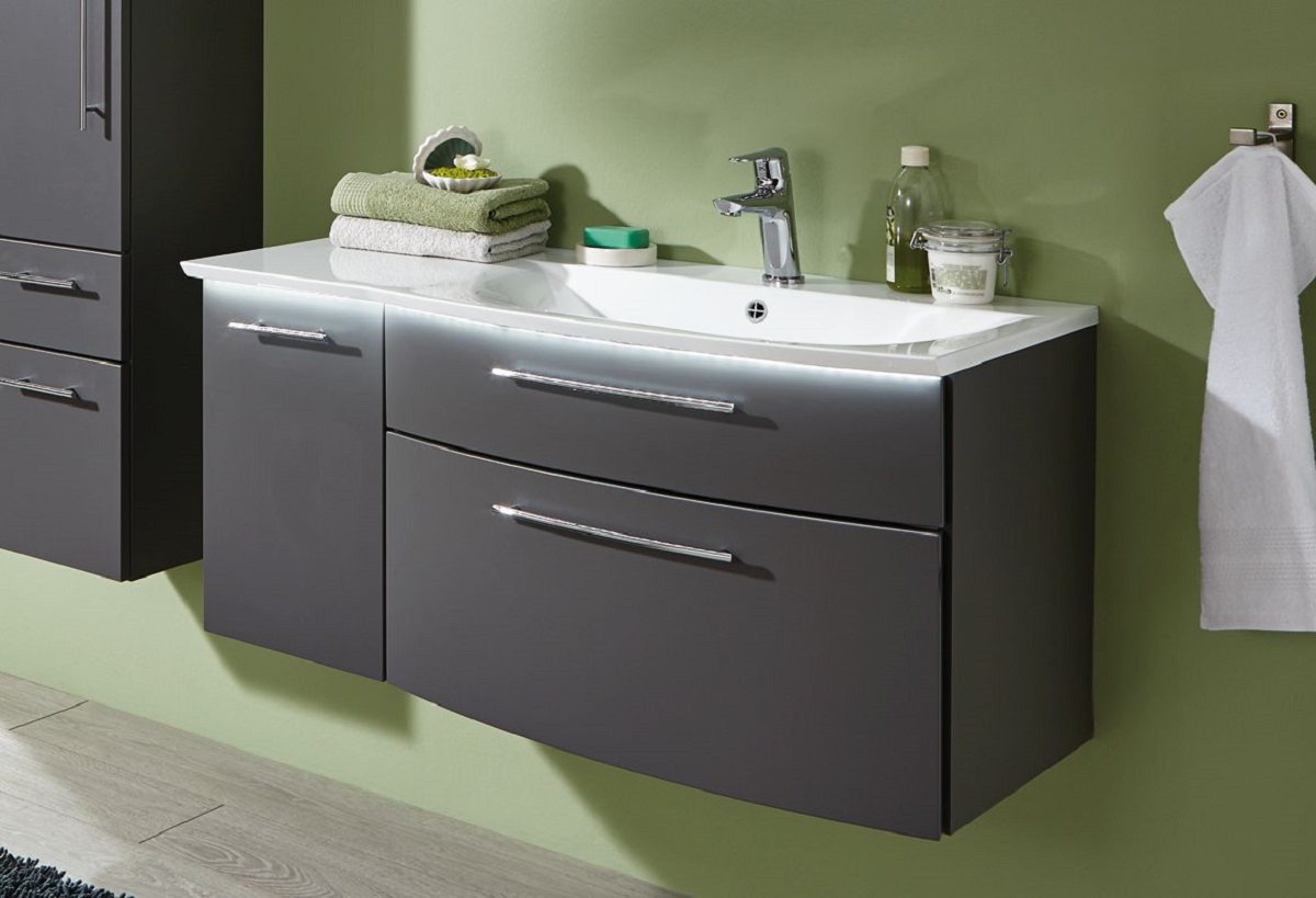 Puris Linea Badmöbel selber schrittweise zusammenstellen bei Badmöbel1. Die Grundvariante vom Puris Linea Badmöbel Set besteht aus einem Mineralguss Waschtisch und einem Waschtischunterschrank mit zwei Schubkästen und einer Tür, wahlweise mit oder ohne LED-Beleuchtung.