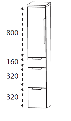Dieser Hochschrank ist mit einer Tür, 2 Glasfachböden und 3 Auszügen ausgestattet. Er lässt sich, durch sein schlichtes Design, in fast jedem Einrichtungsstil integrieren und eignet sich perfekt zum Verstauen täglicher Pflegeprodukte.