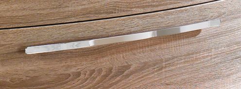 Der Badschrank kann in modernen Dekorfarben individuell ausgewählt werden. Der Stangengriff in Chrom Glanz rundet das Badmöbel-Design perfekt ab.