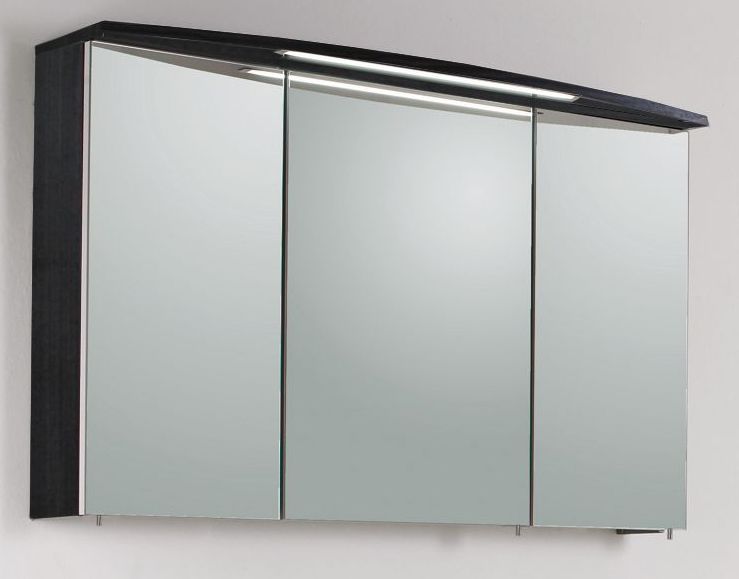 Puris Speed Badmöbel Spiegelschrank 100 cm breit S2A431055 mit Gesimsboden und LED-Beleuchtung. Der zeitlos schöne Puris Speed Spiegelschrank S2A431055 ist 100 cm breit und mit drei Spiegeltüren auf Trägerplatte, Glasfachböden, Schalter-Steckdosenelement und einem Gesimsboden mit LED-Einbauleuchte ausgestattet.