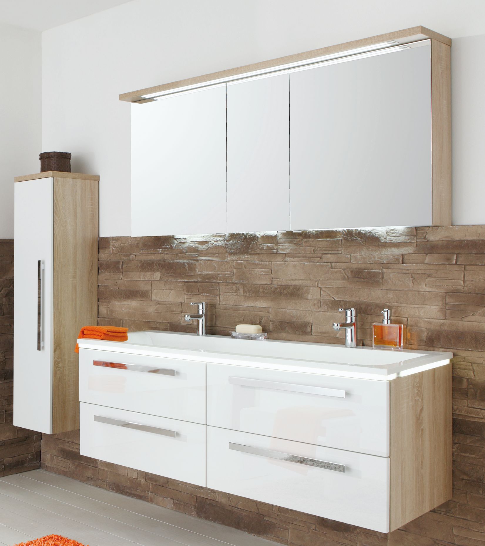 Puris d.light Badmöbel Set 123,2 cm breit kombinierbar, mit Doppelwaschtisch -35%