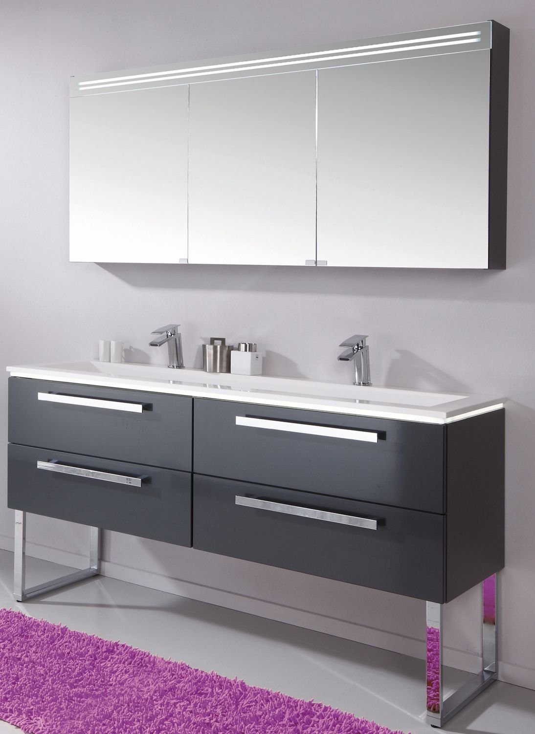 Modern, zeitlos und funktional. Das 160,6 cm breite Puris Star Line Badmöbel Set besteht aus einem hochwertigen Doppelwaschtisch mit Unterschrank sowie einem dreitürigen Spiegelschrank mit LED-Beleuchtung.