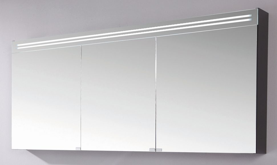 Der formschöne Spiegelschrank von Puris Star Line ist mit drei Doppelspiegeltüren, zwei Mittelwänden, einem Schalter-Steckdosen-Element, sechs Glasfachböden und einer Spiegelblende inkl. LED Beleuchtung ausgestattet. Um unnötige Fingerabdrücke auf den Spiegeltüren zu vermeiden sind im Lieferumfang passende Griffblöcke enthalten, welche das Spiegelschrank-Design optisch perfekt abrunden. Weiterhin bietet der Puris Spiegelschrank ausreichend Stauraum für Pflegeartikel des täglichen Gebrauchs an.