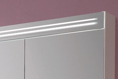 Des Weiteren kann zum Spiegelschrank zusätzlich eine LED-Waschplatzbeleuchtung ausgewählt werden. Diese Zusatzbeleuchtung wird hinter dem Spiegelschrank montiert und ist mit einem Schalterelement ausgestattet. Durch diese Spiegelschrank-Unterbaubeleuchtung wird der Waschtisch mit Unterschrank optisch hervorgehoben und rundet die Badezimmer-Einrichtung perfekt ab.