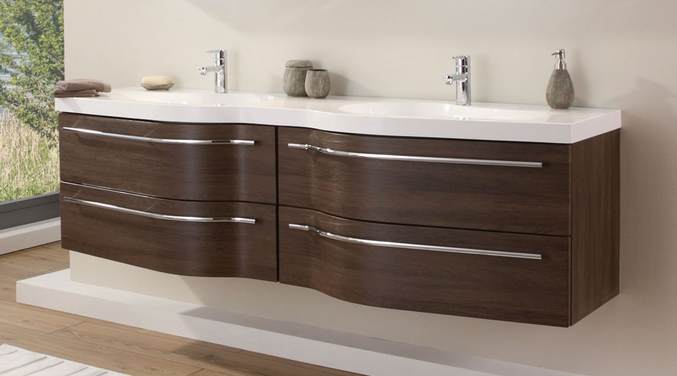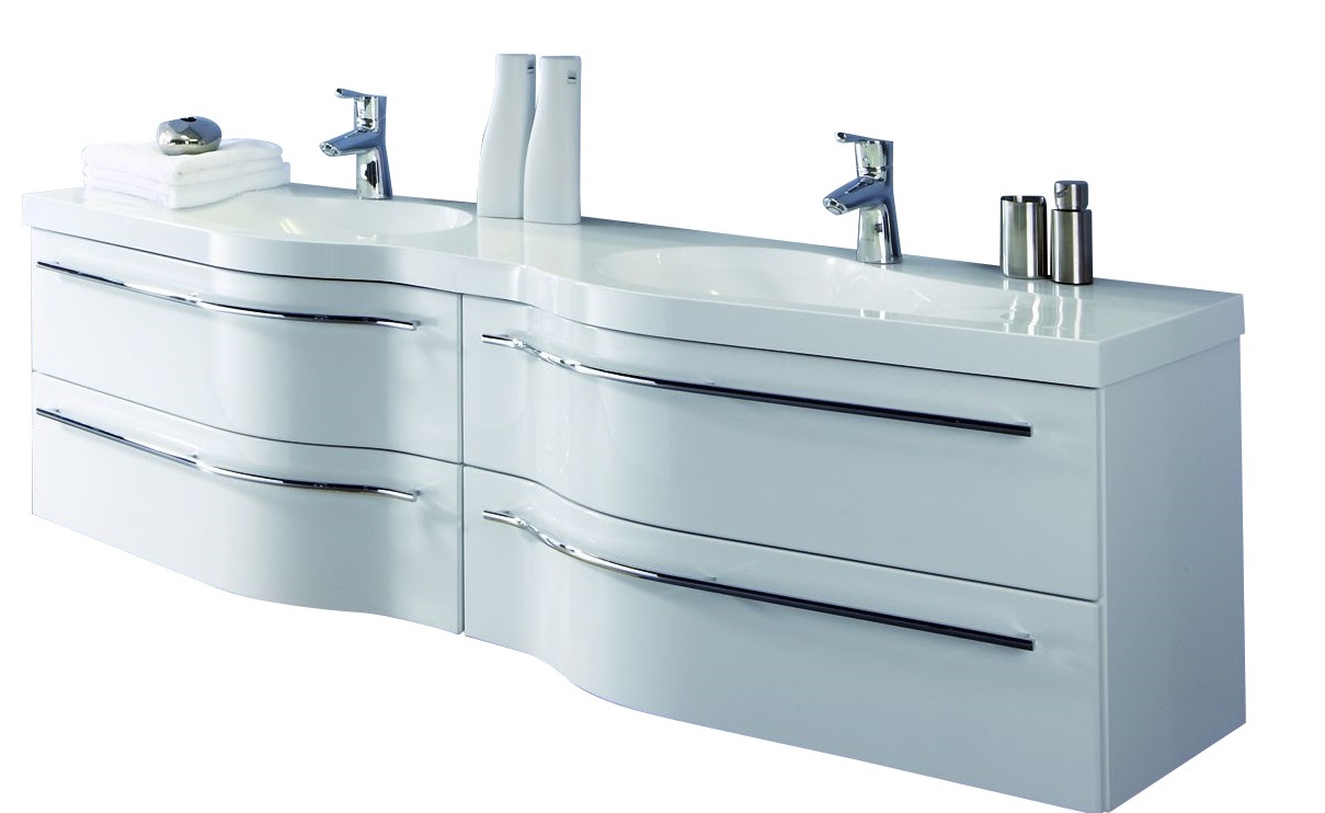 Mit dem 180,6 cm breiten Puris Swing Doppelwaschplatz lassen sich große Bäder stilvoll und modern einrichten. Das Doppelwaschtisch-Set von Puris Swing setzt sich aus einem formschönen geschwungenen Doppelwaschtisch mit den passenden Waschtischunterschränken zusammen. Das Puris Swing Badmöbel Set ist ideal für einen 2-Personen-Haushalt oder auch für Familien geeignet. Hier findet jeder seinen Platz sich auf den neuen Tag vorzubereiten.