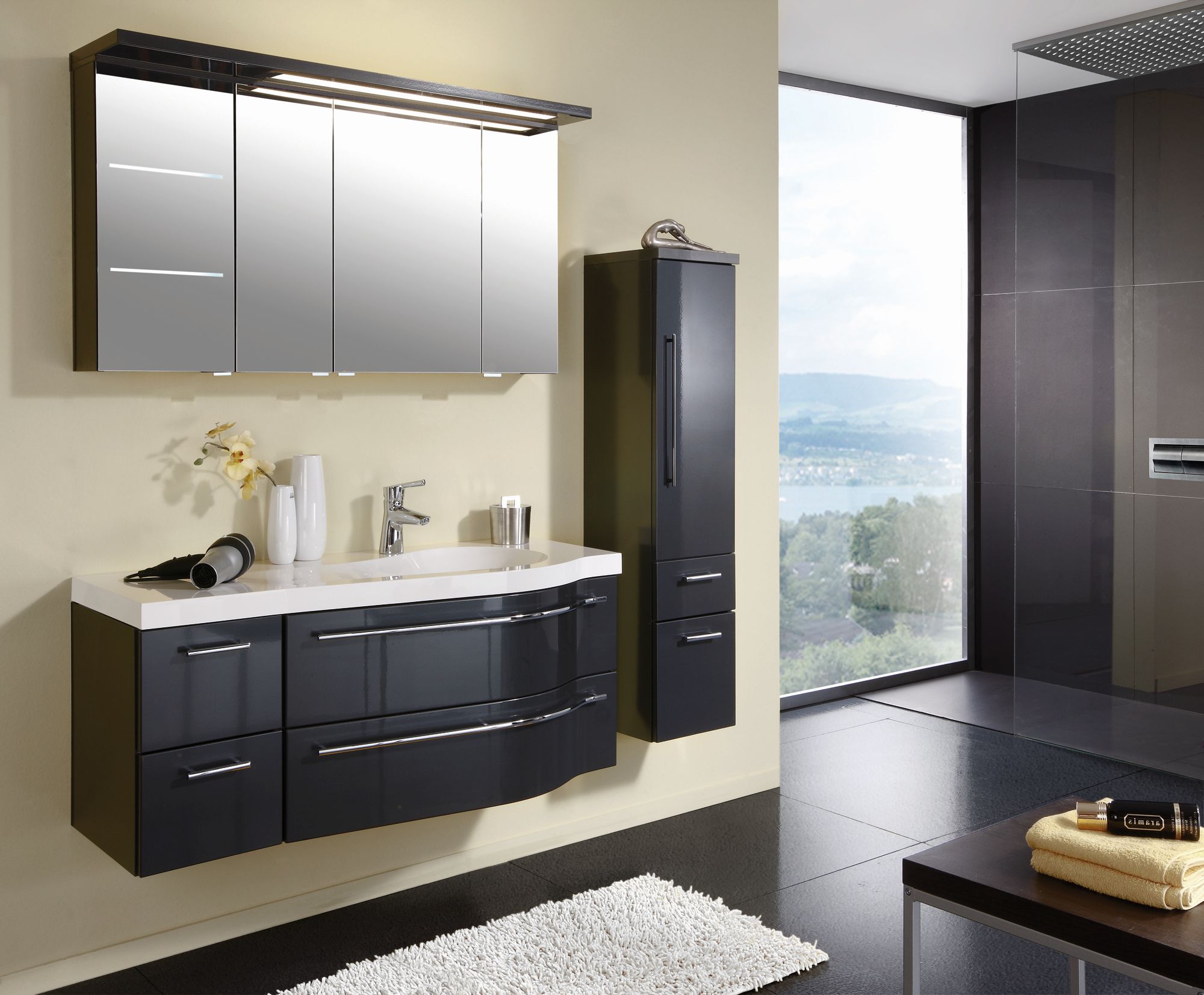 Der 120 cm breite Puris Swing Bad-Spiegelschrank wird die Badezimmer-Einrichtung hervorragend abrunden. Der Spiegelschrank von Puris Swing kann perfekt mit dem Einzelwaschtisch mit Unterschrank von derselben Badserie kombiniert werden.