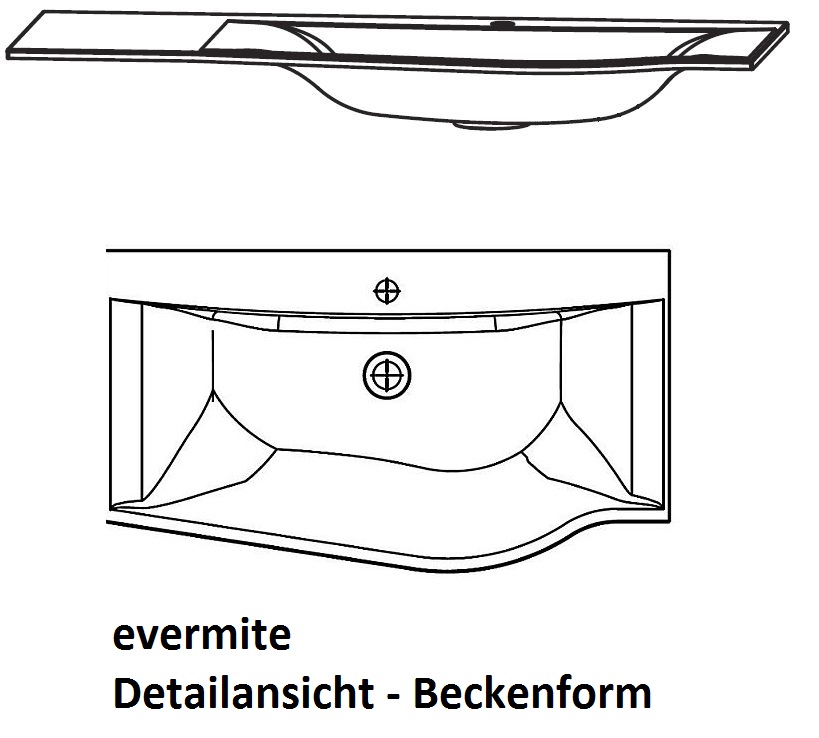 - Bitte beachten Sie, dass die Form des Waschtisches bei der Variante mit Evermite-Beschichtung von der Grundvariante abweicht.
