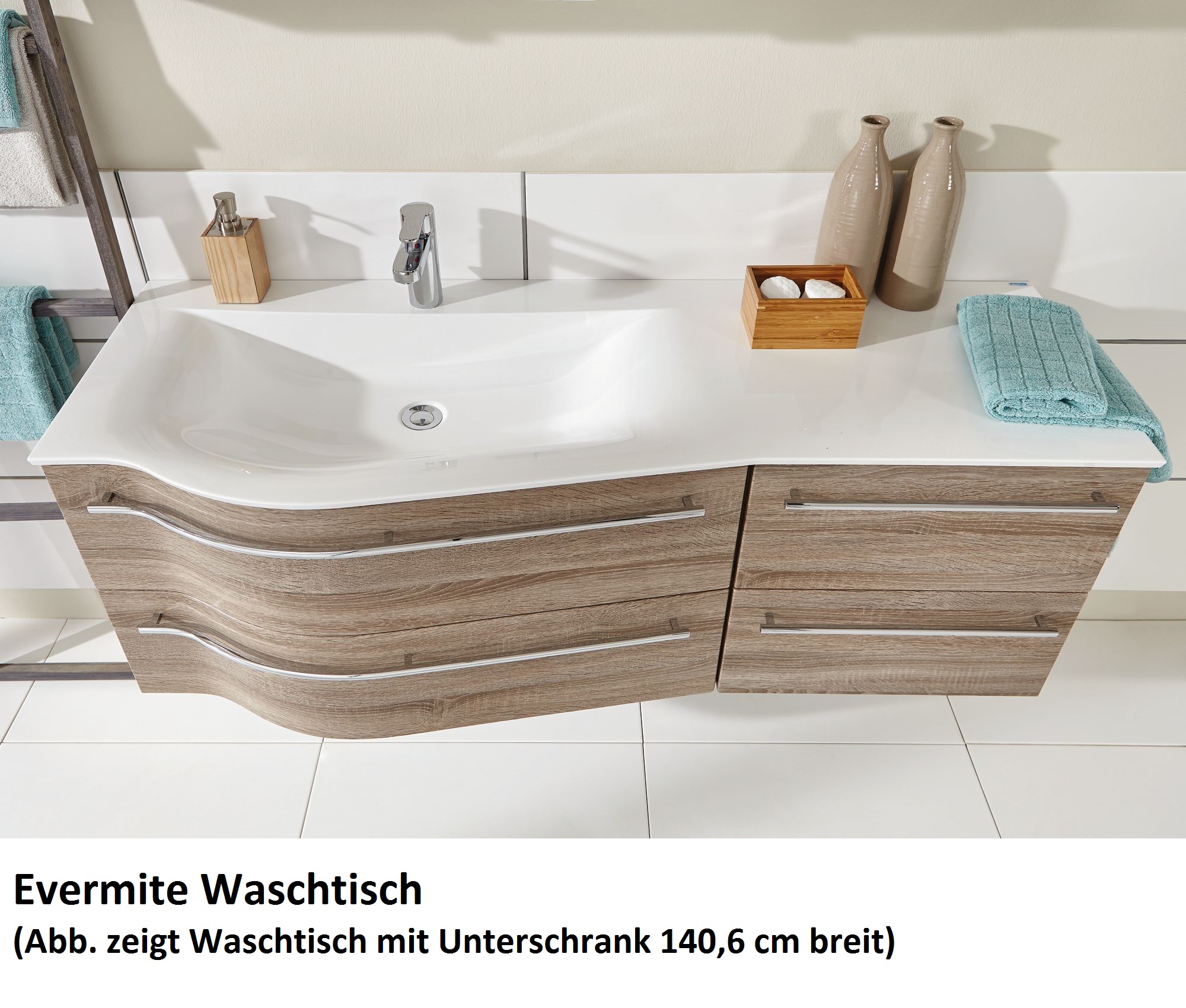 - Bitte beachten Sie, dass die Form des Waschtisches bei der Variante mit Evermite-Beschichtung von der Grundvariante abweicht.