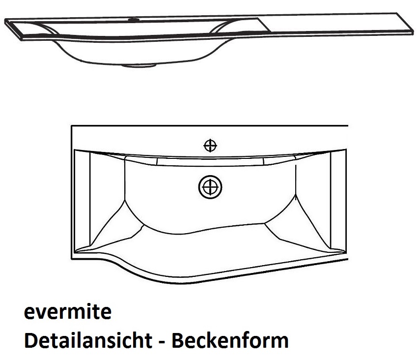 - Bitte beachten Sie, dass die Form des Waschtisches bei der Variante mit Evermite-Beschichtung von der Grundvariante abweicht.