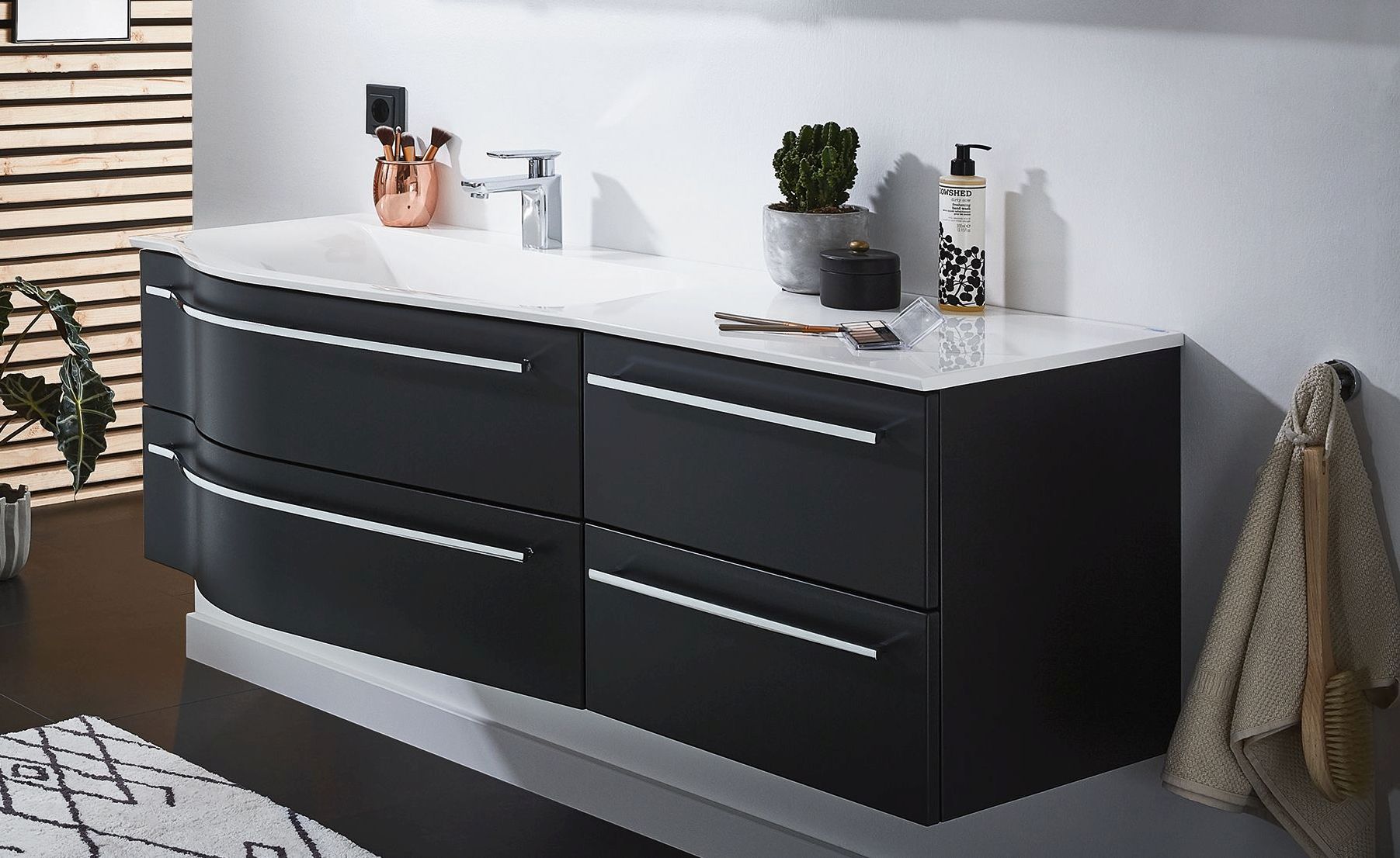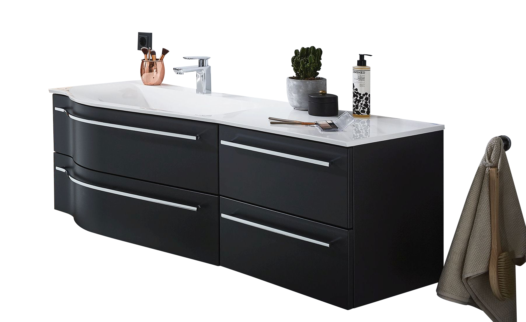 Puris Swing Waschtischset 140 cm breit Schwarz - Sofort lieferbar - Sonderpreis -23%