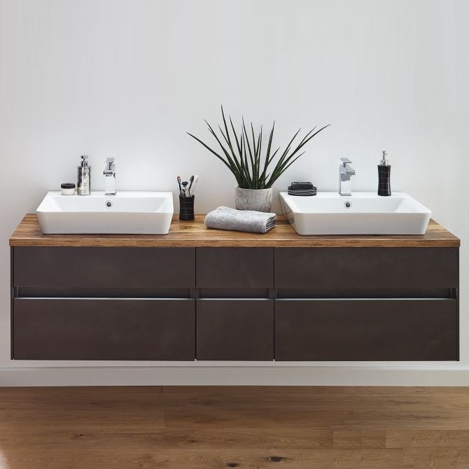 b.essence Badmöbel-Set 160 cm breit inkl. 2 Aufsatzbecken & Spiegel -25%