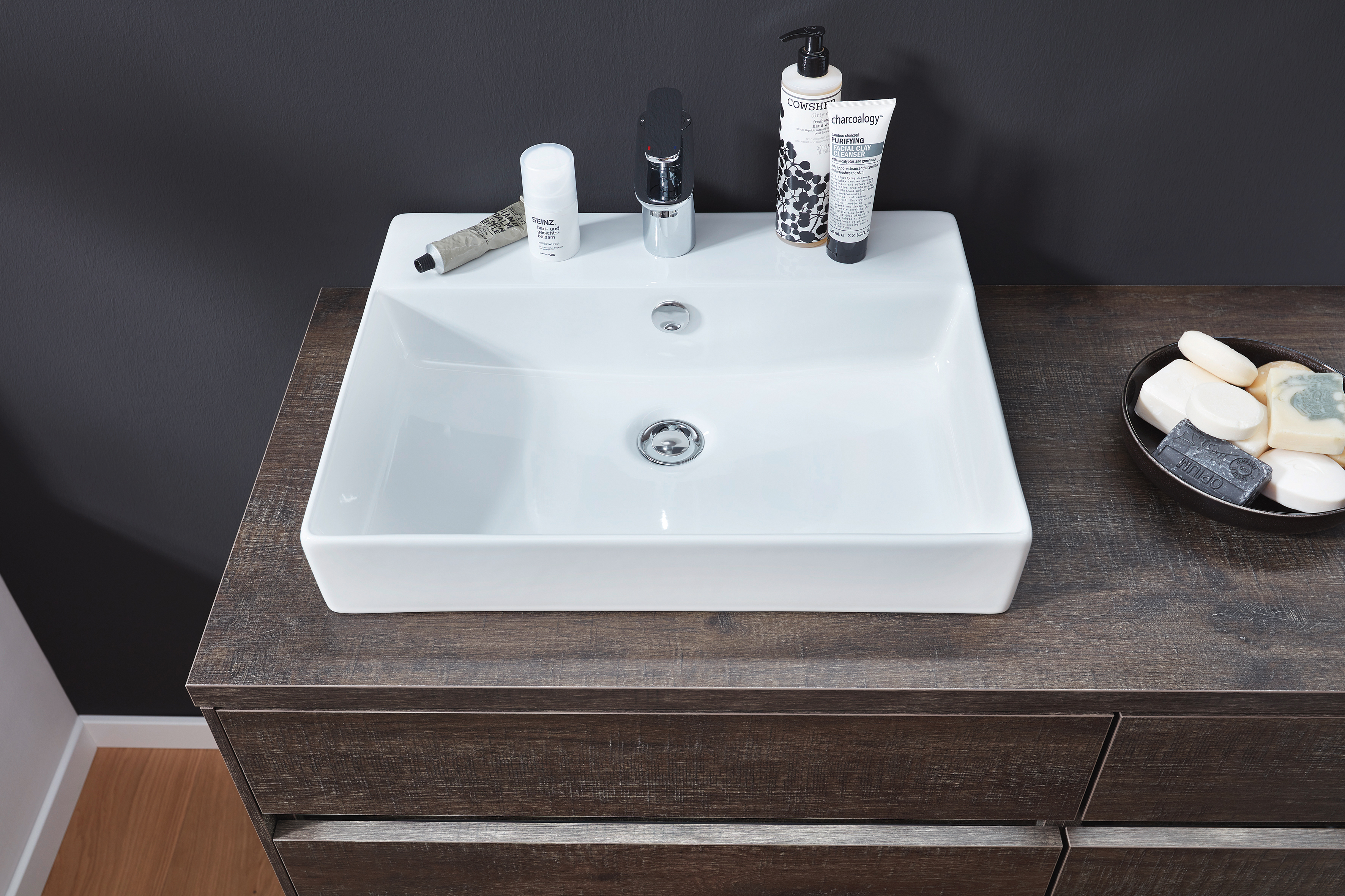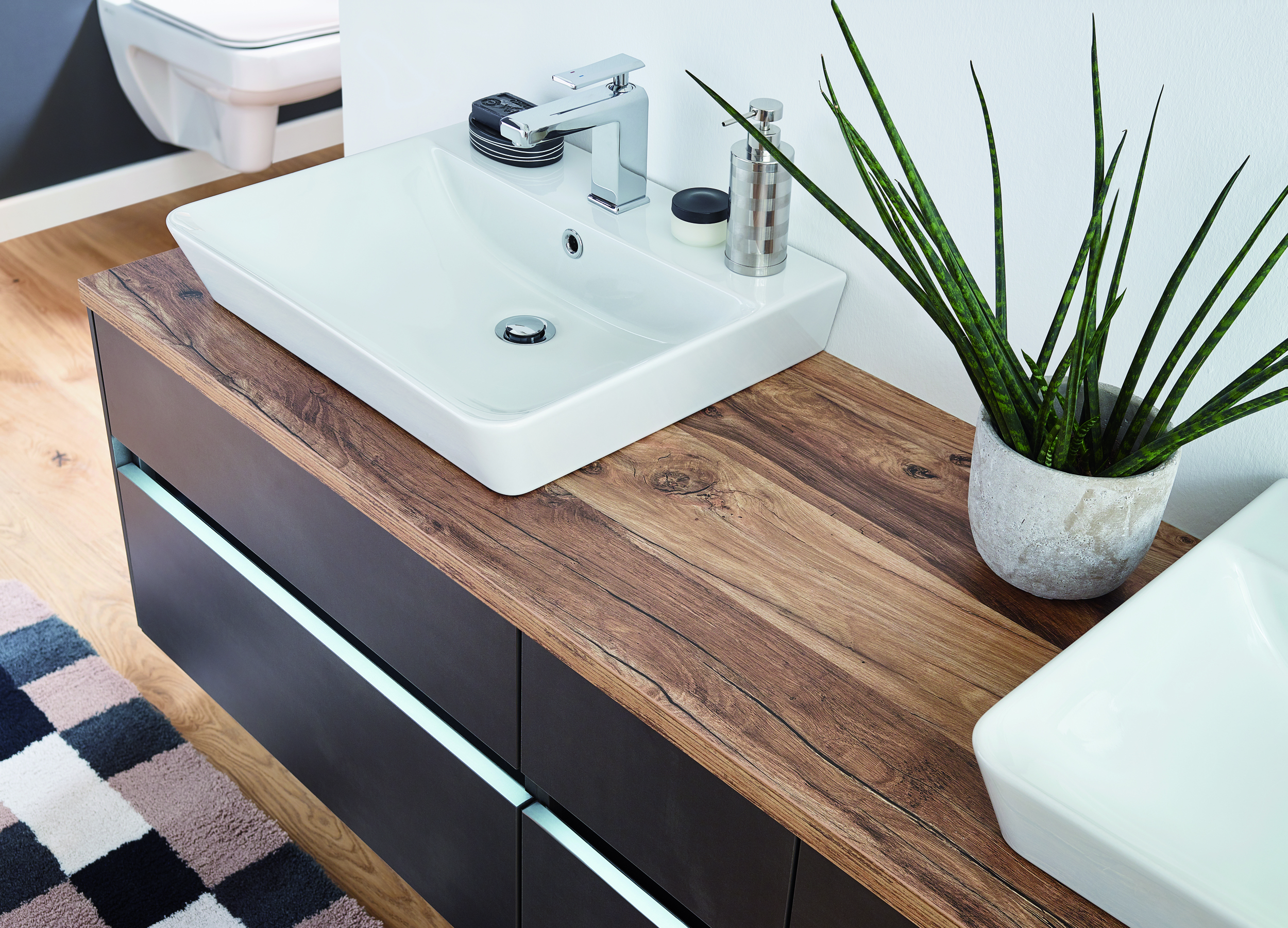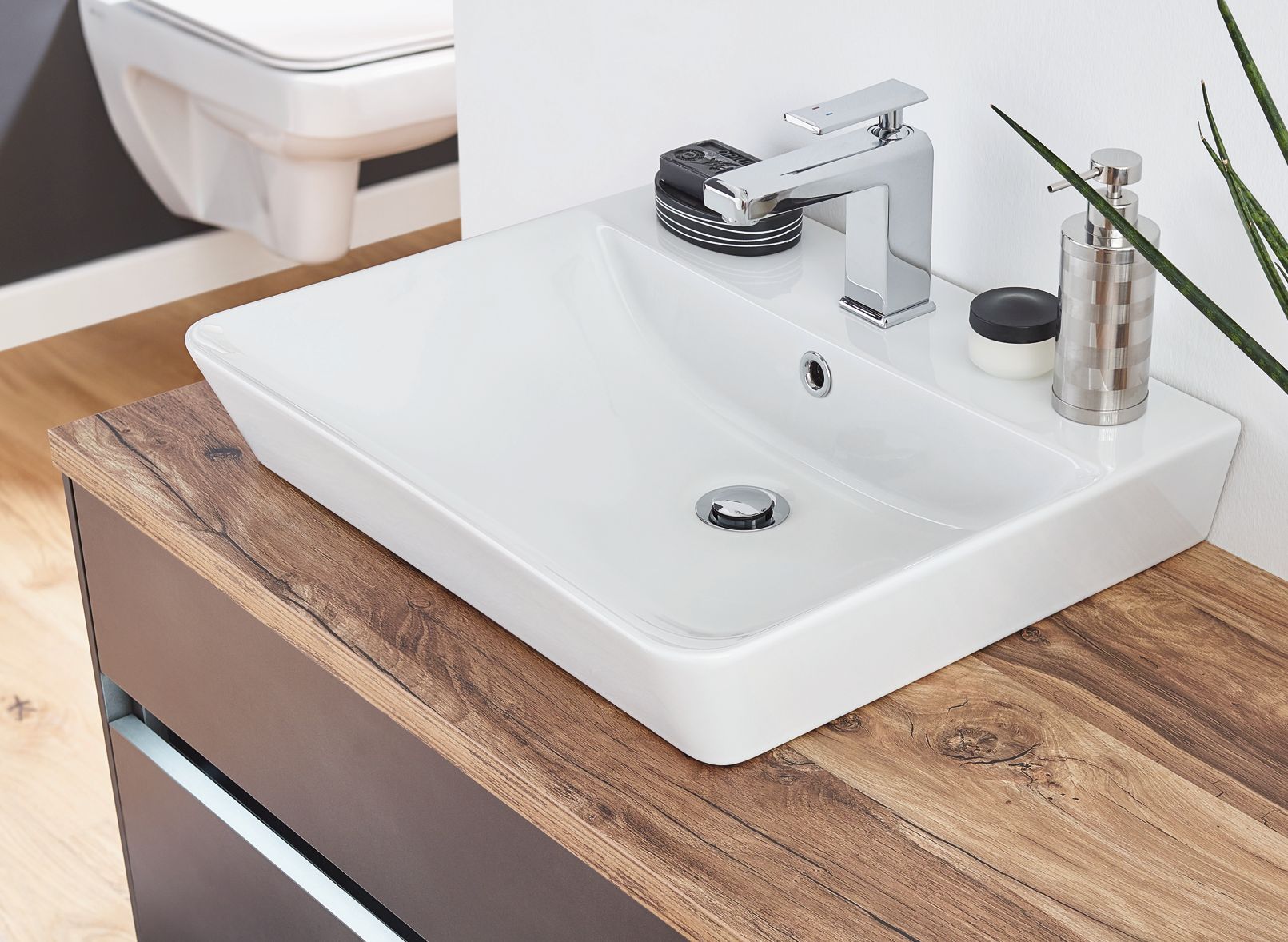 Abgebildete Dekorationsartikel, Beistellschränke sowie Armatur sind nicht im Lieferumfang enthalten und müssen ggf. separat bestellt werden.