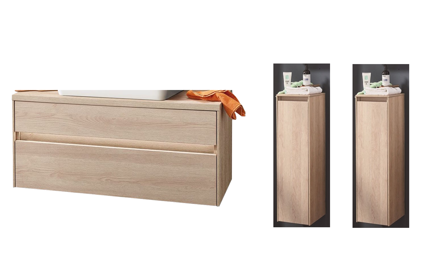 Puris Unique Waschtischunterschrank Eiche 102 cm - Set mit 2 x Highboard - Sonderpreis - sofort lief