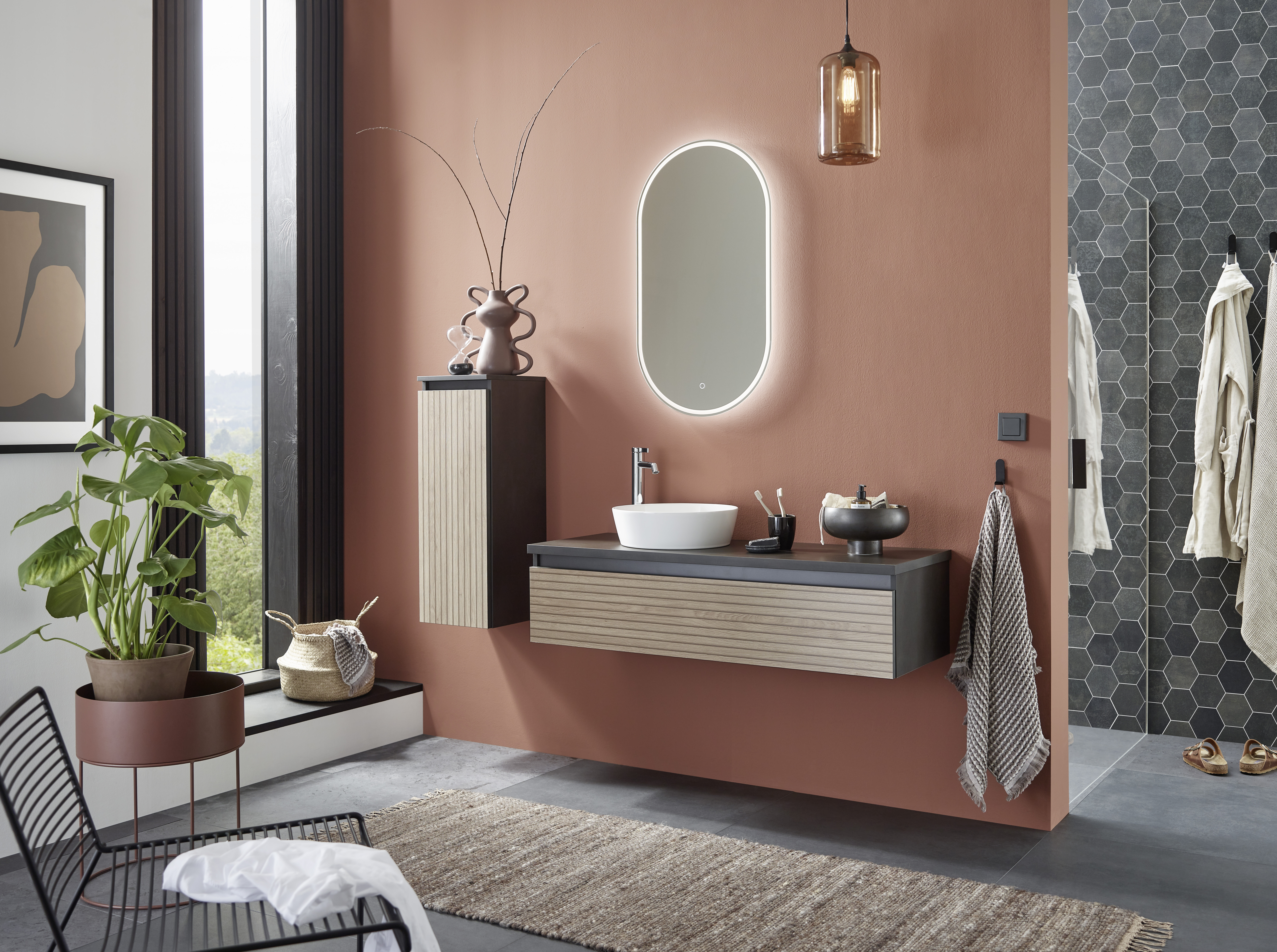 Abgebildete Dekorationsartikel, Beistellschränke sowie Armatur sind nicht im Lieferumfang enthalten und müssen ggf. separat bestellt werden.