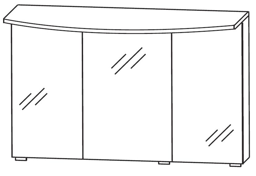 Puris Vuelta Badmöbel Spiegelschrank 120 cm breit S2A432S 2, Gesimsboden mit LED Beleuchtung. Der Puris Vuelta Spiegelschrank ist mit drei Spiegeltüren, Einlegeböden aus Glas, Schalter-Steckdosenelement und einem Gesimsboden mit LED-Beleuchtung ausgestattet. Der 120 cm breite Spiegelschrank aus der aktuellen Badserie Puris Vuelta lässt sich super mit dem Waschplatz aus der gleichen Serie kombinieren. Somit erhalten Sie ein stimmiges Bild im Bad.