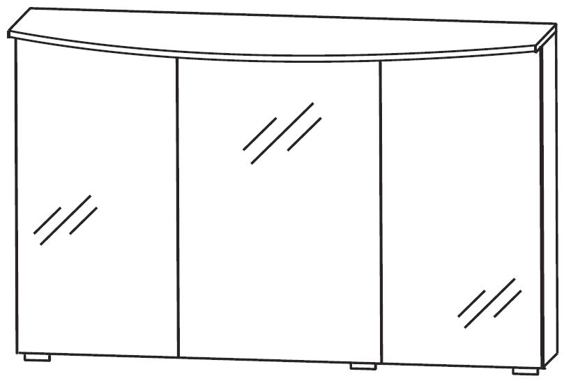 Puris Vuelta Badmöbel Spiegelschrank 120 cm breit S2A427S 3 mit LED-Flächenleuchte. Der 120 cm breite Puris Vuelta Spiegelschrank besteht aus drei Spiegeltüren auf Trägerplatte, Einlegeböden aus Glas, Schalter-Steckdosen-Element, Mittelwände und einem formgefrästen Gesimsboden mit einer LED Flächenleuchte. Unterteilt wird der Spiegelschrank mit Hilfe der drei Glaseinlegeböden, die dafür Sorge tragen, dass der Innenraum optimal ausgenützt wird und Sie einen guten Blick über die einsortierten Badutensilien haben.