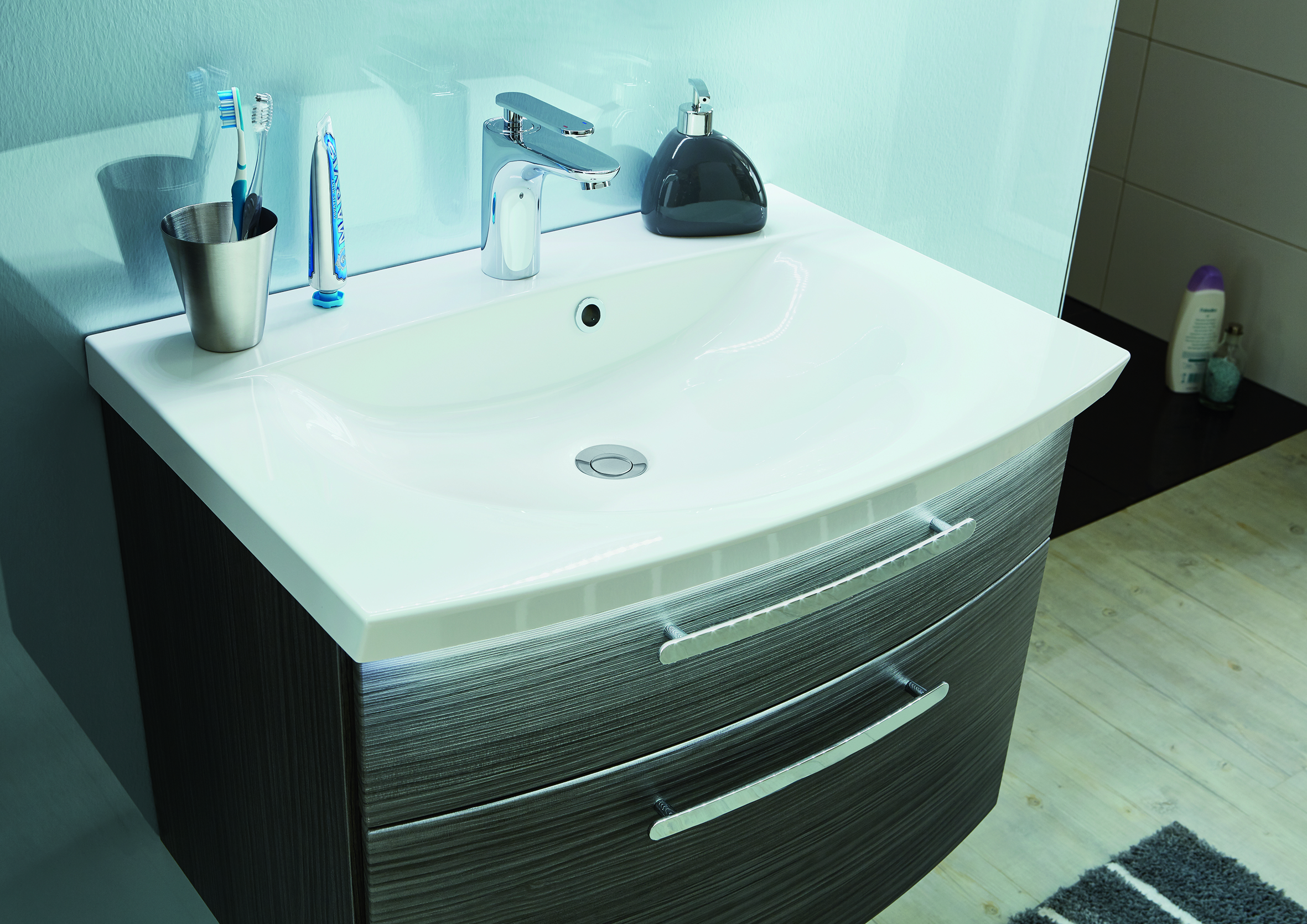 Die Badezimmermöbel von der Badserie Puris Vuelta können mit Hilfe der Auswahlmöglichkeiten einfach zusammen gestellt werden. Zuerst können Sie zum Vuelta Waschplatz einen passenden und formschönen Spiegelschrank auswählen, welcher das Badset hervorragend ergänzt. Beim Puris Spiegelschrank können die Spiegeltüren mit / ohne Facettenschliff geliefert werden und es kann optional eine weitere Zusatzbeleuchtung in Form von einer Unterbaubeleuchtung bestellt werden. Beim nächsten Schritt kann man beim Puris Vuelta Waschtisch mit Unterschrank eine weitere LED-Beleuchtung auswählen, die sich zwischen dem Waschbecken und dem Waschtischunterschrank wiederfindet. Dadurch erreichen Sie einen weiteren tollen Lichteffekt im Badezimmer. Abschließend wählen Sie noch das Dekor für die Vuelta Badezimmermöbel aus. Ihnen stehen klassische neutrale Hochglanzfarben und schöne Farben in Holzoptik zur Verfügung.