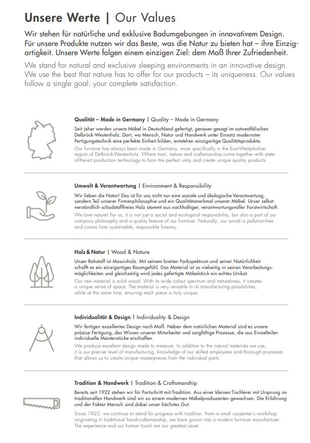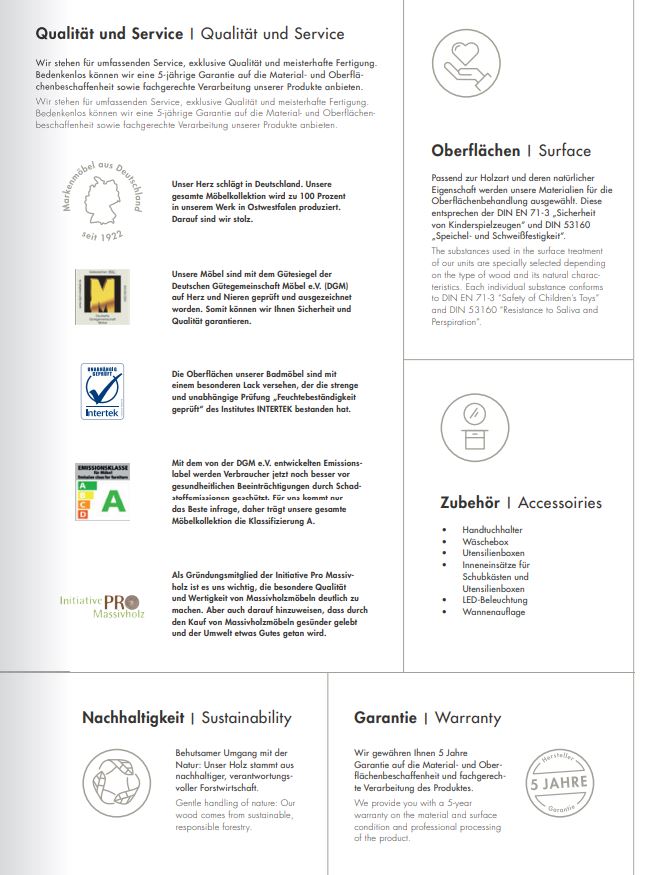 - 5 Jahre Garantie auf die Material- und Oberflächenbeschaffenheit und fachgerechte Verarbeitung des Produktes.