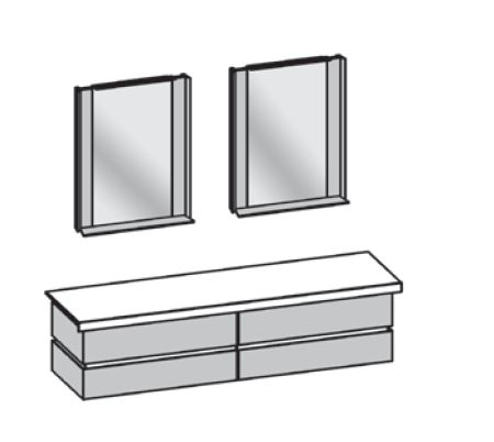 Bestehend einem grauen Mineralgusswaschtisch, passendem Unterschrank mit Auszügen und, und zwei Spiegelschränken, verwandeln Sie Ihr Badezimmer in eine Möbel-Oase! Optional können Sie aus anderen Waschtisch-Optionen wählen.