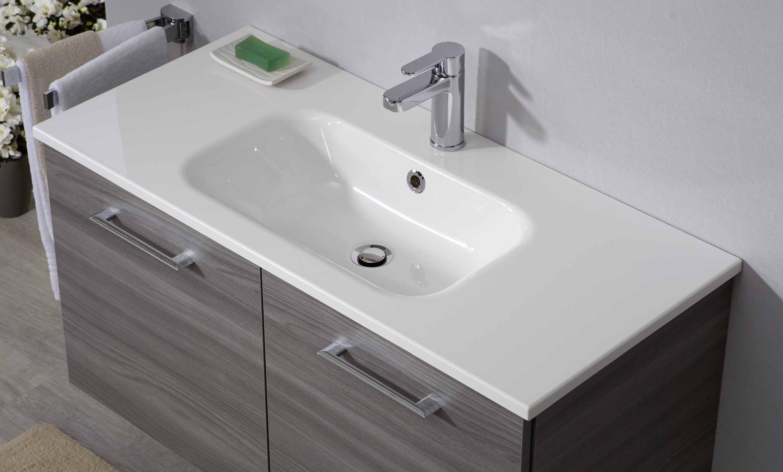 Puris Fresh Waschtisch mit Unterschrank 100,6 cm breit mit Mineralguss- oder Glasbecken -30%